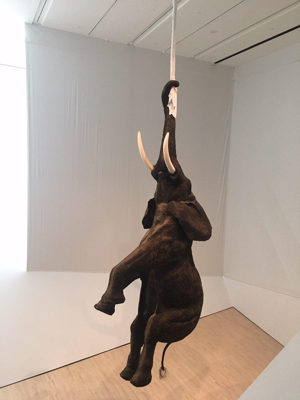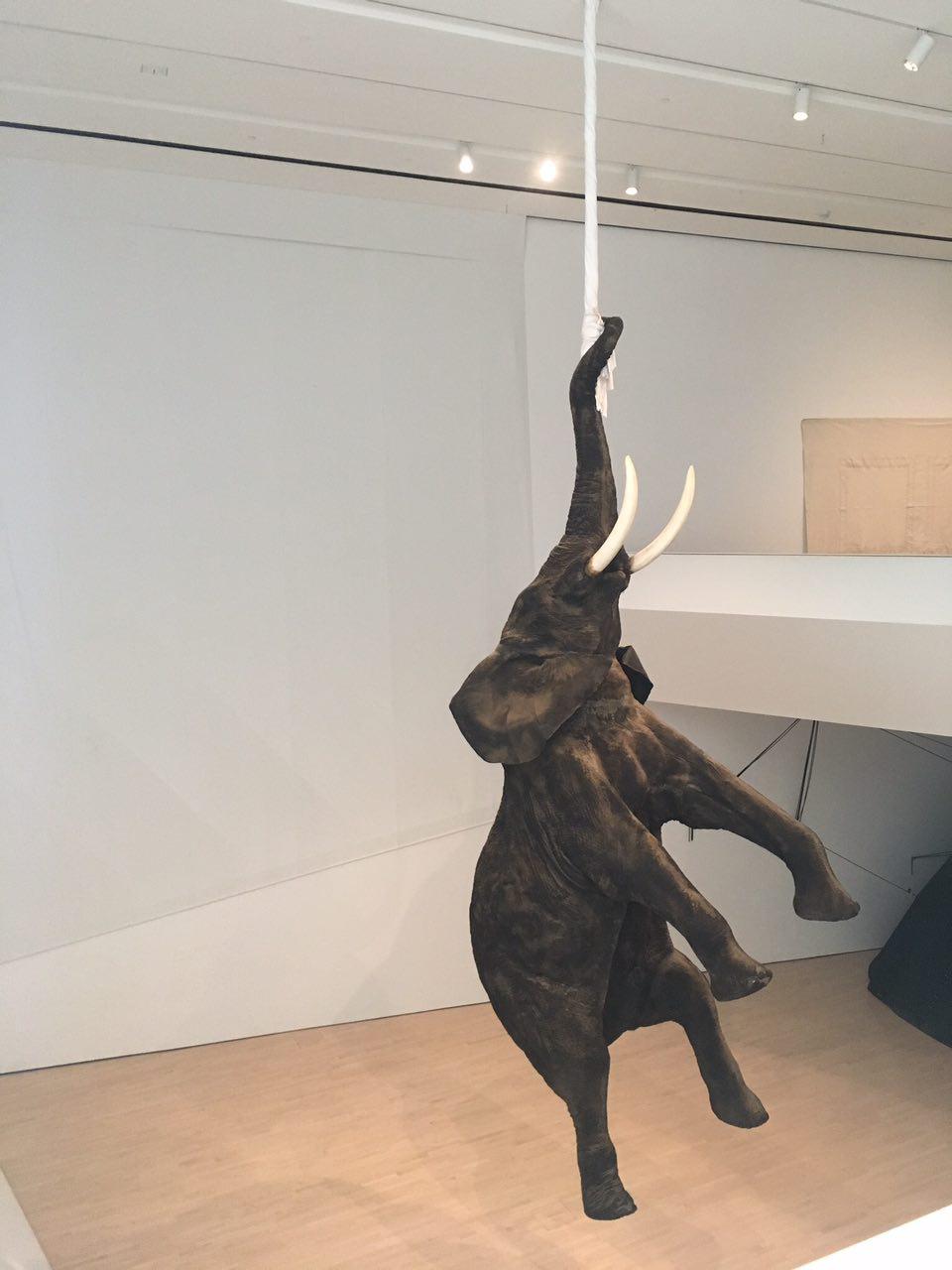 يکي ديگر از آثار اين نمايشگاه که روزانه تعداد بسيار زيادي بازديد کننده را به موزه جذب مي کند، فيل بسيار عظيمي است که از سقف موزه آويزان شده است. هنرمند با آنچنان دقت و ظرافت خاصي اين اثر را آفريده، که بازديدکنندگان به سختي مي توانند تشخيص دهند که اين فيل حقيقي است يا خير. حتي هنگامي که اين فيل از کشور بلژيک راهي نيويورک و سپس شهر ايست لَنسينگ در ميشيگان بود، روزها و هفته ها در گمرک نگه داري شد. پليس آزمايش هاي