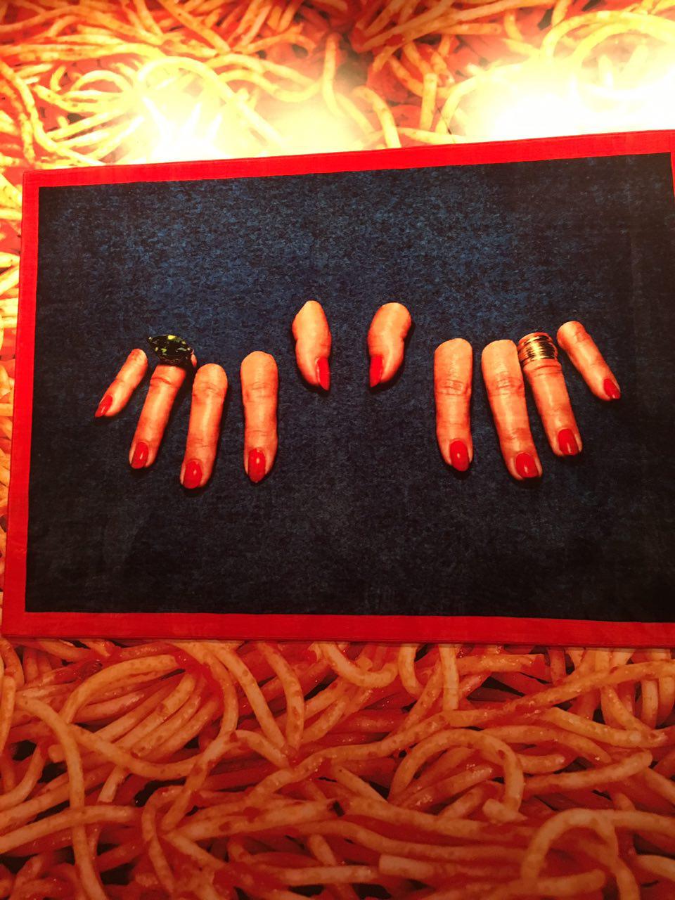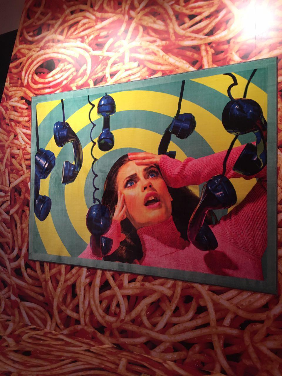 کاغذ توالت نام مجله اي است که توسط هنرمندي به نام ماروزييو کَتِلان (Maurizio Cattelan) و عکاسي به نام پيرپاؤلو فِراري (Pierpaolo Ferrari) تأسيس شده است. اين مجله با الهام از تاريخ هنر و فشن بعد از همکاري اين دو هنرمند در يک پروژه عکاسي در سال ۲۰۰۹ آغاز به کار کرد. در اين نمايشگاه اين آثار به صورت فرش هايي که روي ديوار و کف زميني که کاملاً با اسپاگتي پوشانده شده قرار گرفته است. اجراي اين آثار در گالري پاساژ دقيقاً در ورودي شرقي موزه يک فضاي کاملاً محرک براي بازديدکنندگان به وجود آورده به طوري که آنها در بدو ورود از ديدن آن به وجد آمده و شروع به عکس گرفتن مي کنند. جالب است بدانيد که اين قسمت تنها قسمتي از موزه است که بازديدکنندگان مي توانند کليه آثار آن را لمس کنند.