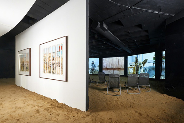 سطح زميني که مخاطب در اين نمايشگاه بر آن پا ميگذارد نيز همچون مضمون آثار دچار تغيير ميشود و از سطوح صاف و هموار به بخش هاي پوشيده شده از شن و ماسه و بعد به سطوحي که با خرده هاي کاغذي و پوشالي نا هموار شده اند ميرسد.