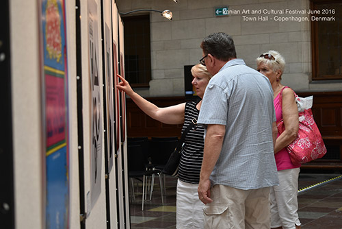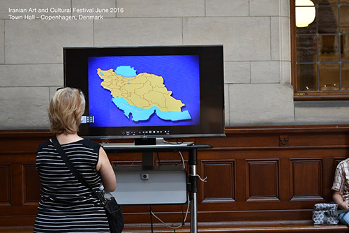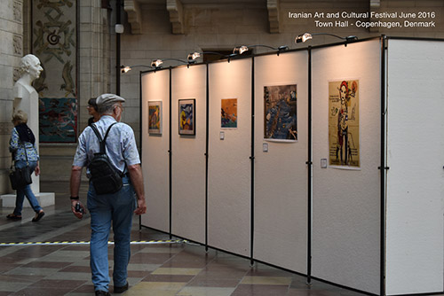 اين نمايشگاه شامل 110 آثر پوستر، تصويرسازي، نقاشي و عکاسي از تاريخ 25 تا 30 جون 2016 در ساختمان اصلي و مرکزي شهر کپنهاگ دانمارک سالن Town Hall برگزار شده. همچنين فيلم هاي مستندي از ايران و هنر صنايع دستي ايران در طول نمايشگاه قابل مشاهده است.
