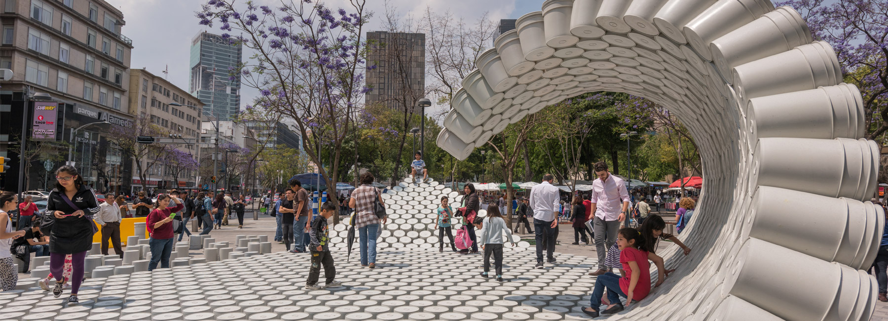 سيل در پارک مرکزي آلامده در شهر مکزيکو سيتي، اثري بود که در جشنواره معماري مکستروپوليس به معرض نمايش در آمد.