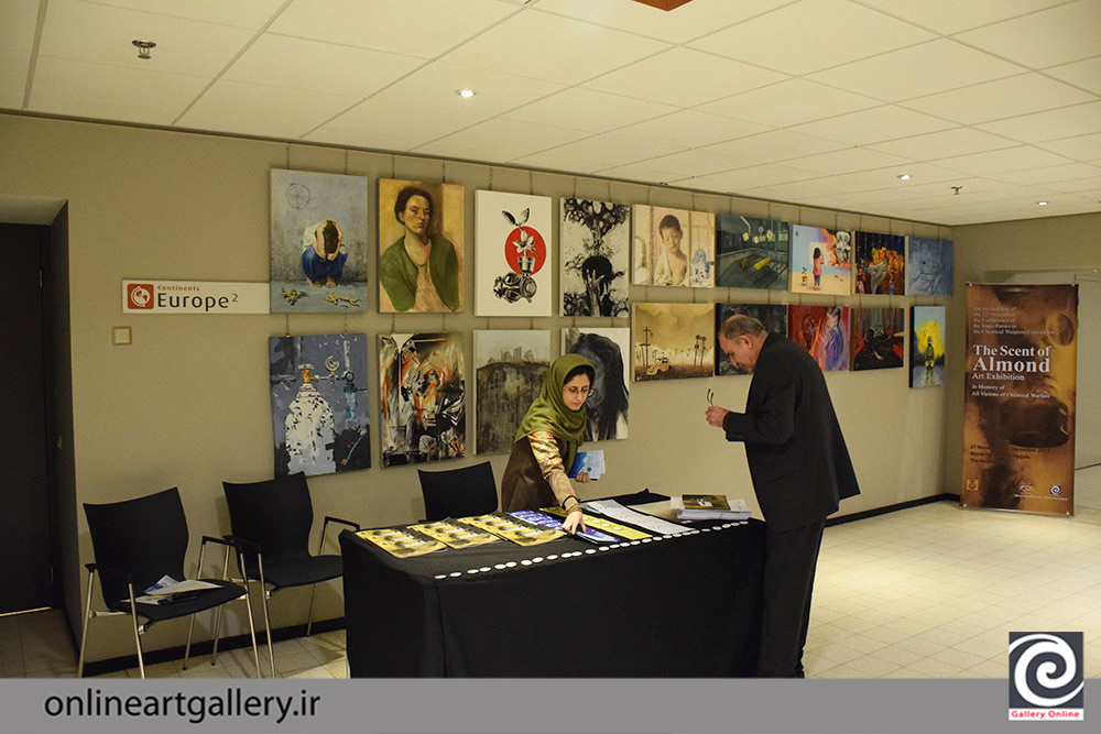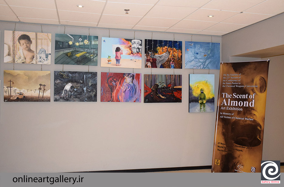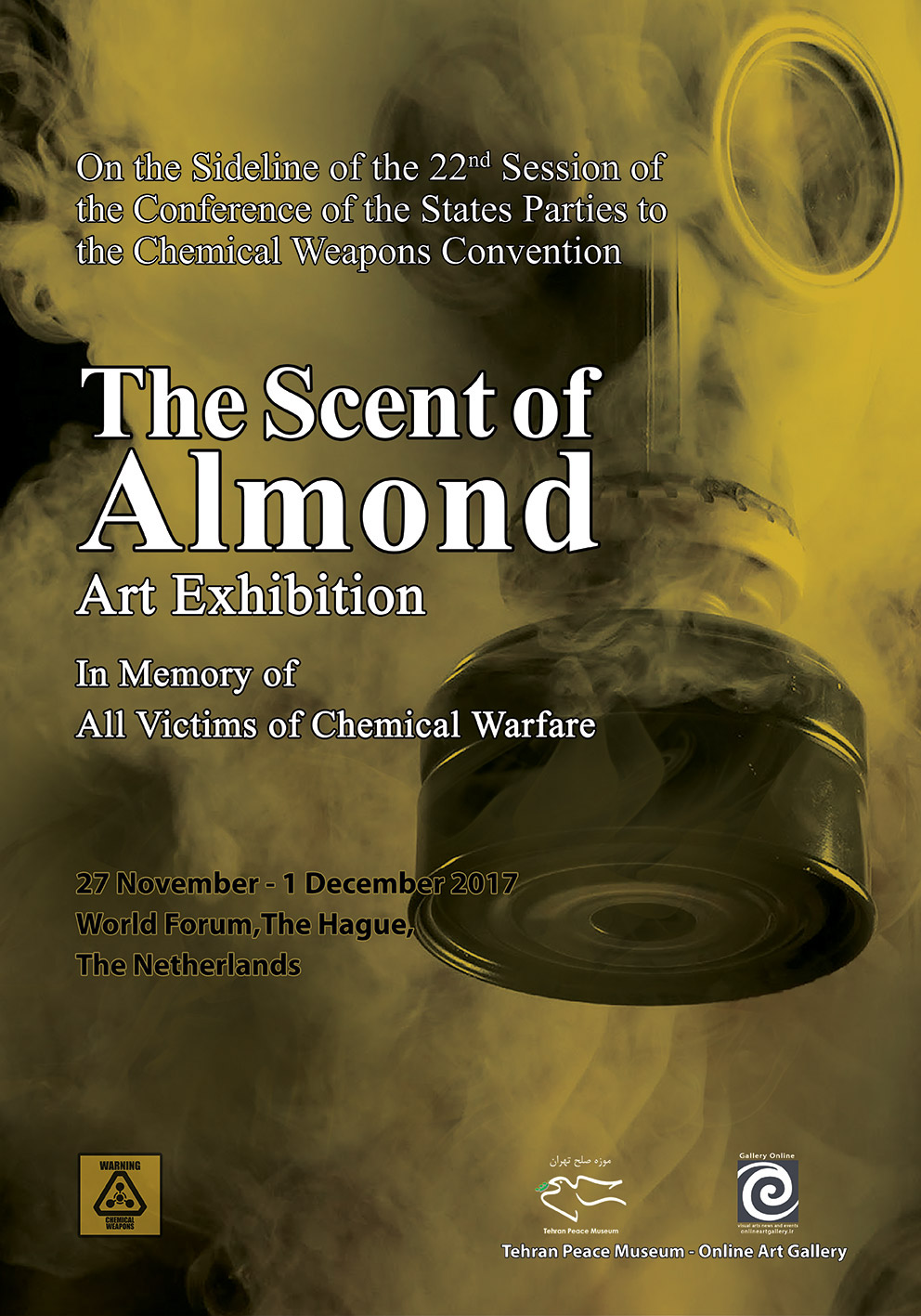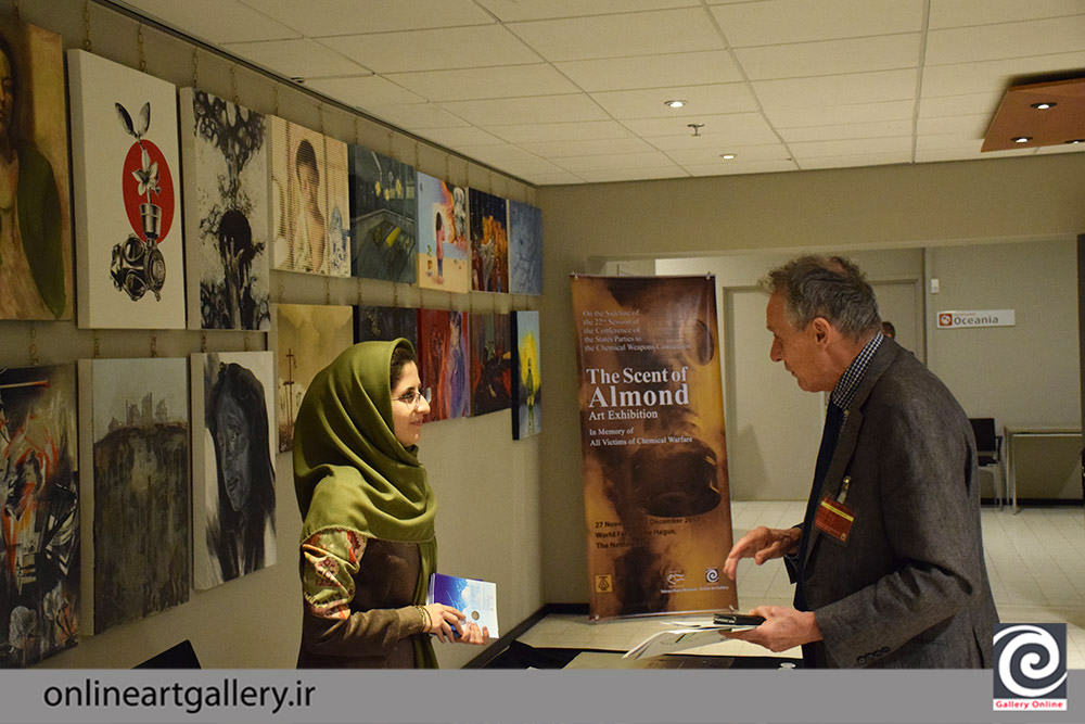 نمايشگاه نقاشي بوي بادام توسط موزه صلح تهران و گالري آنلاين در حاشيه بيست و دومين کنفرانس منع سلاح هاي شيميايي در لاهه هلند افتتاح شد.