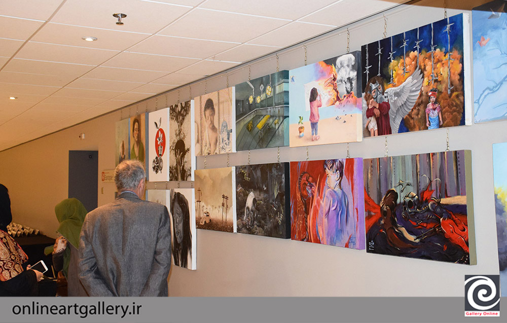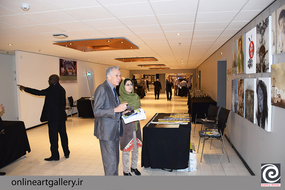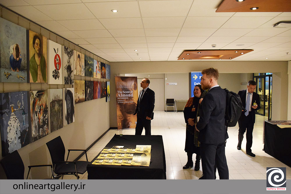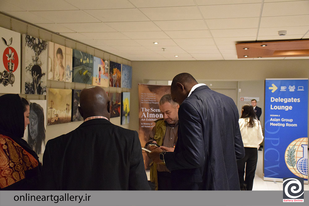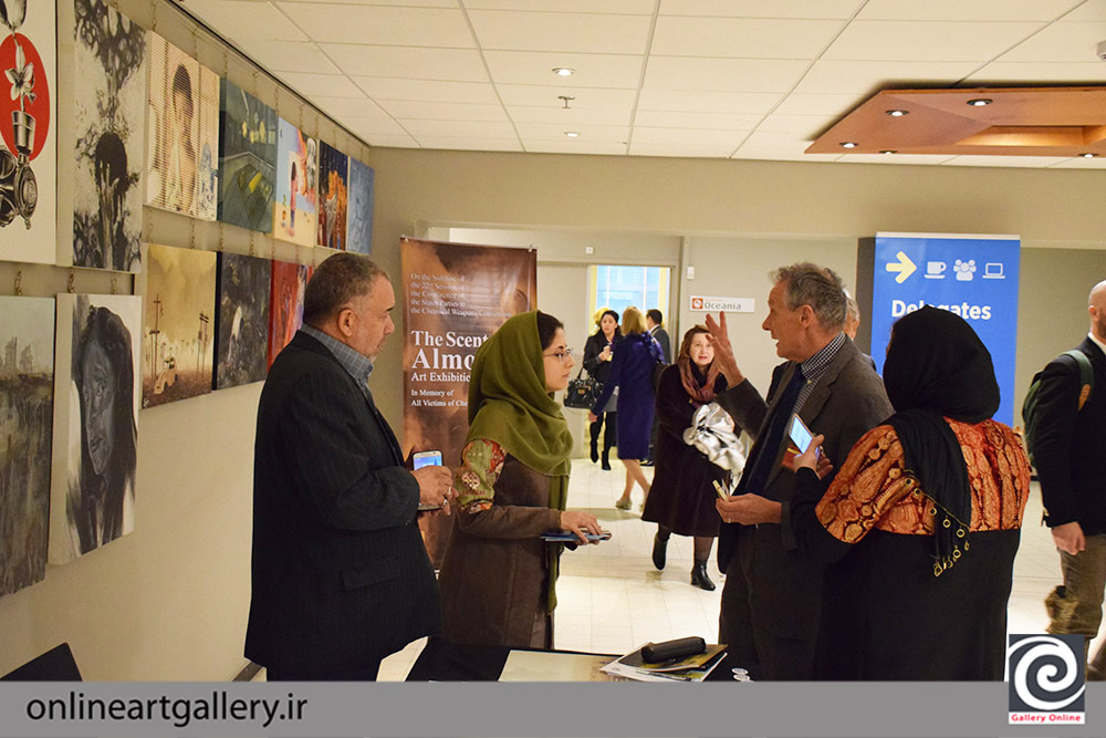 نمايشگاه نقاشي بوي بادام توسط موزه صلح تهران و گالري آنلاين در حاشيه بيست و دومين کنفرانس منع سلاح هاي شيميايي در لاهه هلند افتتاح شد.