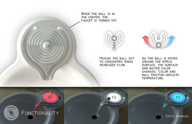 در نمونه ي بعدي که سال 2008 توسط Smith Newnam ساخته شد، با استفاده از حرکت يک توپ فلزي بر روي سنسورهاي الکترومغناطيسي، کنترل دما و جريان آب انجام ميشود.
