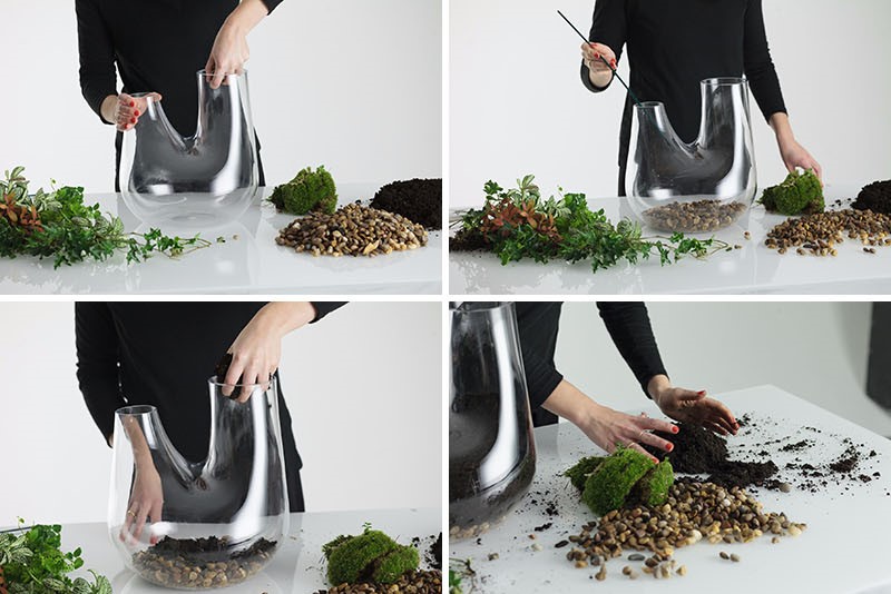 به گزارش گالري آنلاين، هر گلدان بزرگ يا کوچک از دو حباب شيشه اي ساخته شده است که به کاربر اجازه ميدهد به شکل دلخواه گياهان را در آن قرار دهد.