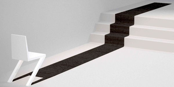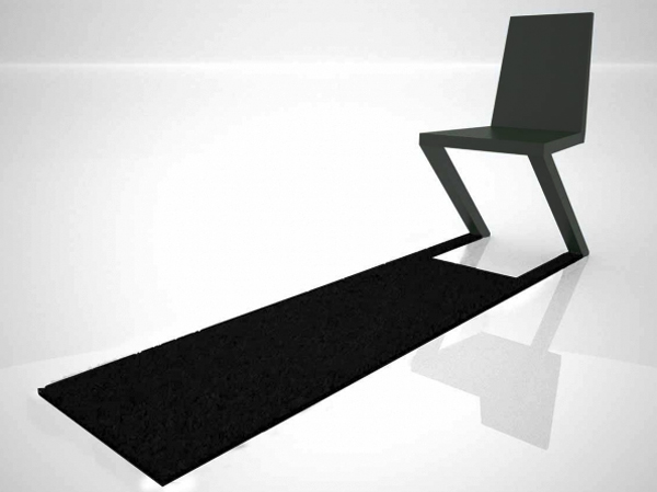 مجموعه صندلي سايه به شکلي طراحي شده است که در ابتدا به نظر مي آيد تنها روي دو پايه قرار گرفته، در حالي که يک ورقه فولاد زد زنگ سياه در پايين صندلي تعادل آن را حفظ کرده. اين سايه هاي دائمي و بي نظير، نه تنها به عنوان يک ويژگي بصري، بلکه بخشي جدايي ناپذير از ساختار صندلي است.