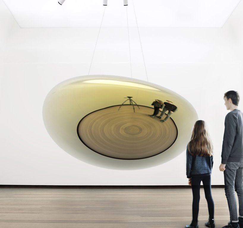 سطح آينه اي و محدب شي خاصيت انعطاف پذيري و شناور بودن حجم را تشديد کرده است.