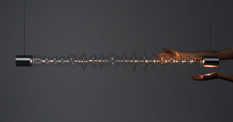 حجمي شيشه اي به طول يک متر براي نورپردازي فضاي داخلي طراحي شده است که با روشن شدن آن رشته اي از نور در محيط ايجاد ميشود.