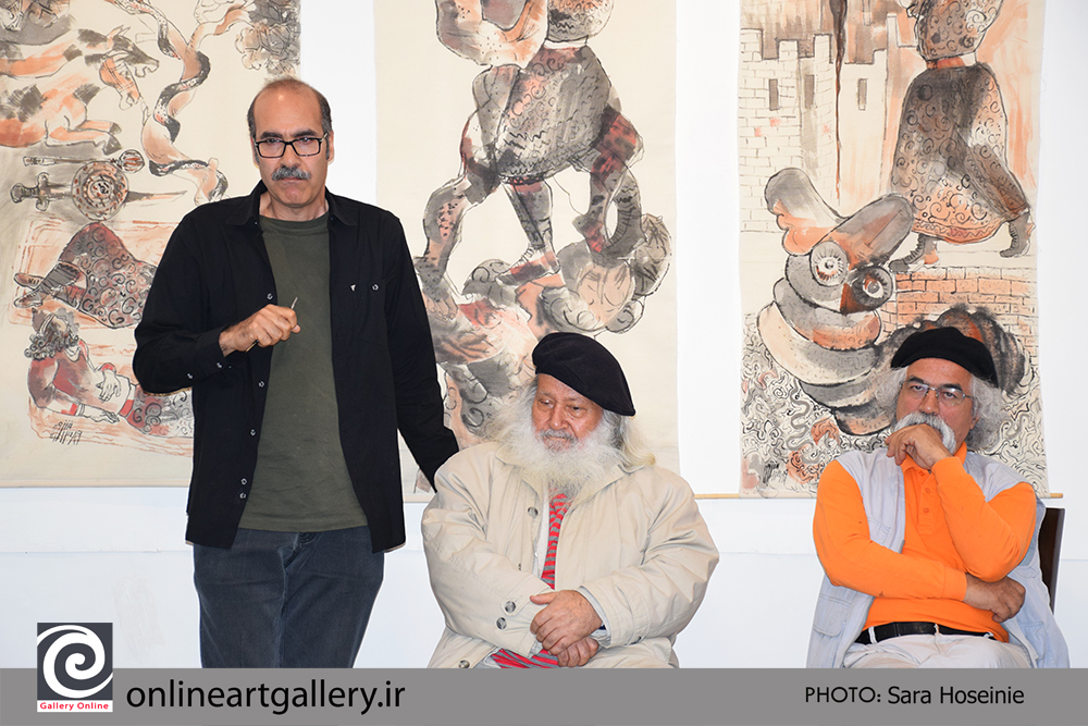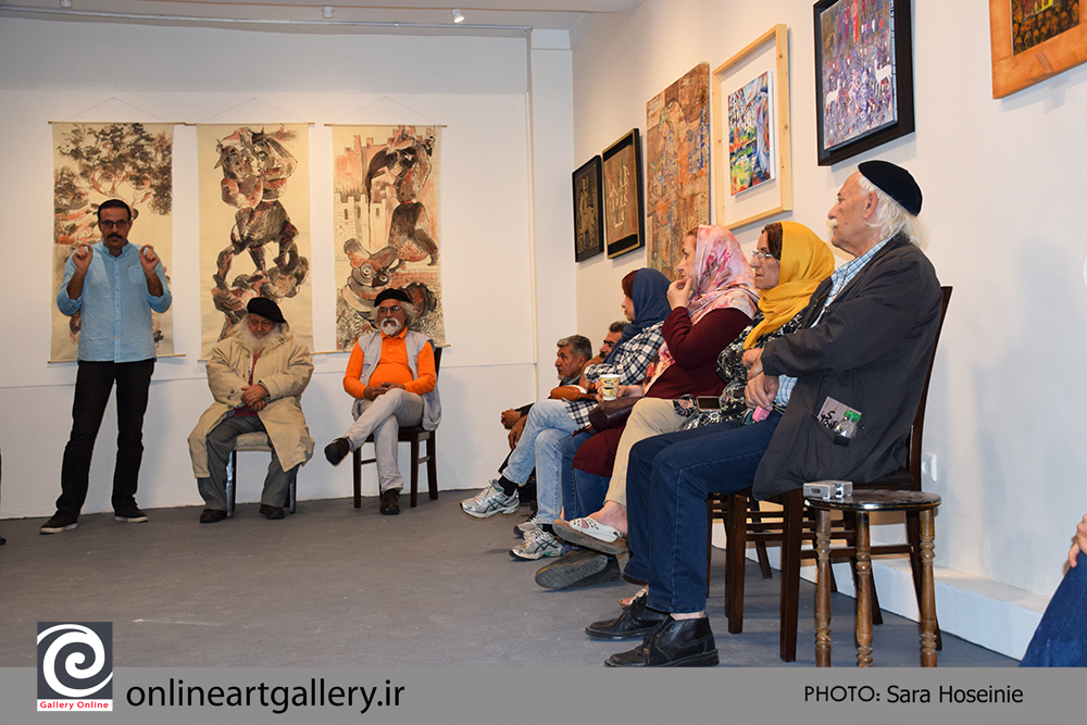 در آيين گشايش اين نمايشگاه هنرمنداني از قبيل استاد اجلي، ايرج اسکندري، فريبا بهمني‌، فريماه تابعي، بهزاد شيشه گران‌، اکبر نيکان پور، جعفر نجيبي، داور يوسفي، آرمان يعقوب پور، رضا هدايت، پرويز حيدرزاده، مسعود صميمي، ابراهيم اکبري گرز و طاهره واحدي حضور داشتند.
