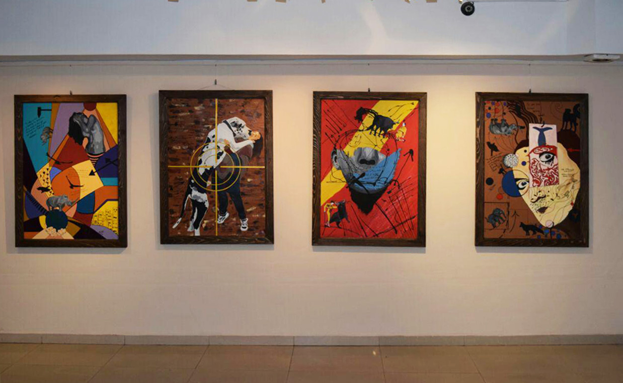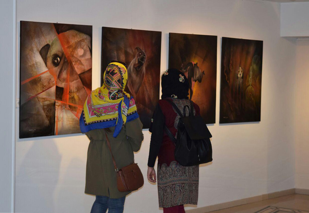 بيننده با 50 تابلو نقاشي از گربه، پلنگ، سگ، خروس ، گوزن، زرافه و …روبرو مي شود…
