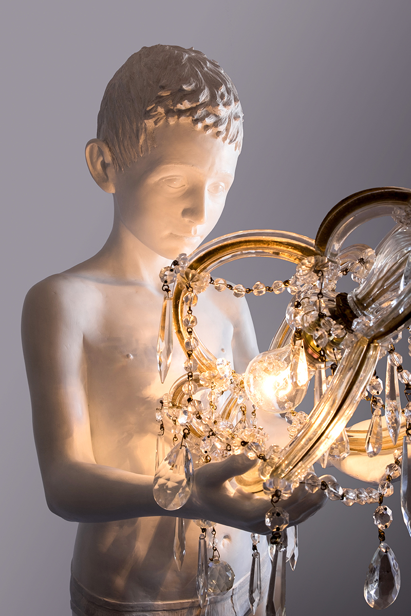 مجسمه ساز و طراح ايتاليايي marcantonio raimondi malerba چراغ هايي را با استفاده از ترکيب اشکال متعدد و چراغ هاي لامپ ايجاد کرده است.