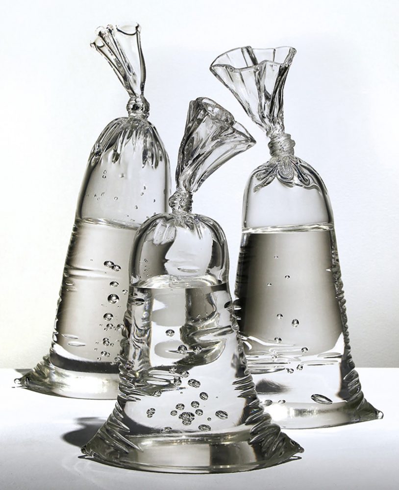 ديلان مارتينز، در آثار خود مرزهاي ادراک انسان را بررسي مي کند، مجسمه هاي حيرتانگيزي را ايجاد مي کند که واقعيتها را مطرح مي کند. در اثر "H2O / SiO2" يک سري از مجسمه هاي ساخته شده از شيشه هاي مذاب شيشه اي درست مانند کيسه هاي پلاستيکي پر شده از آب، ايجاد کرده است.