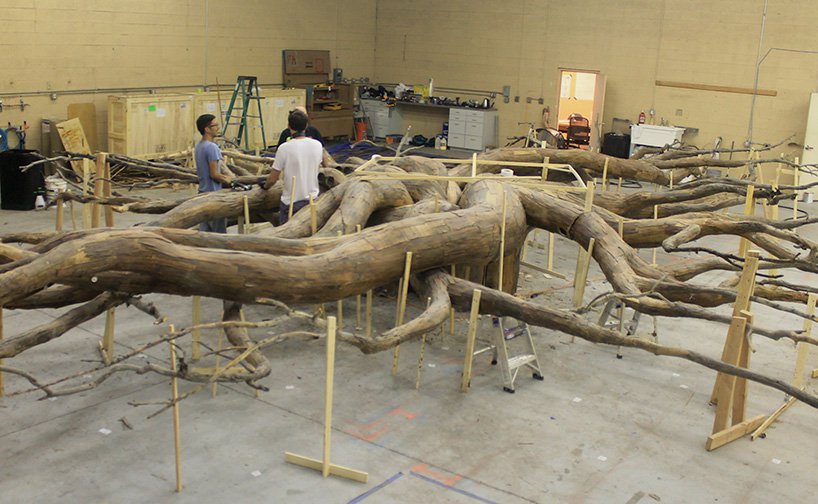 به گزارش گالري آنلاين، اين حجم در داخل لابي پارک MGM در Las Vegas توسط هنرمند برزيلي هنيرو اليوويرا در سراسر سقف نصب شده است و از بازديد کنندگان و مهمانان به هتل استقبال مي کند. اليوويرا براي ساخت اين چيدمان  از چوب  خرد شده، در ترکيب با نقاشي، معماري و مجسمه سازي استفاده کرده است. اين چيدمان يادآور محيط طبيعي است که در اطراف  las vegas وجود دارد.