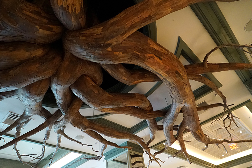 اينستاليشن ساخته شده توسط هنيرو اليوويرا به شکلي است که مخاطب ريشه هاي درخت را از زاويه ديدي که در زير زمين قرار دارد، مشاهده ميکند.