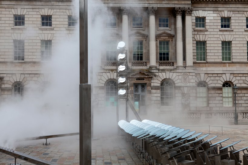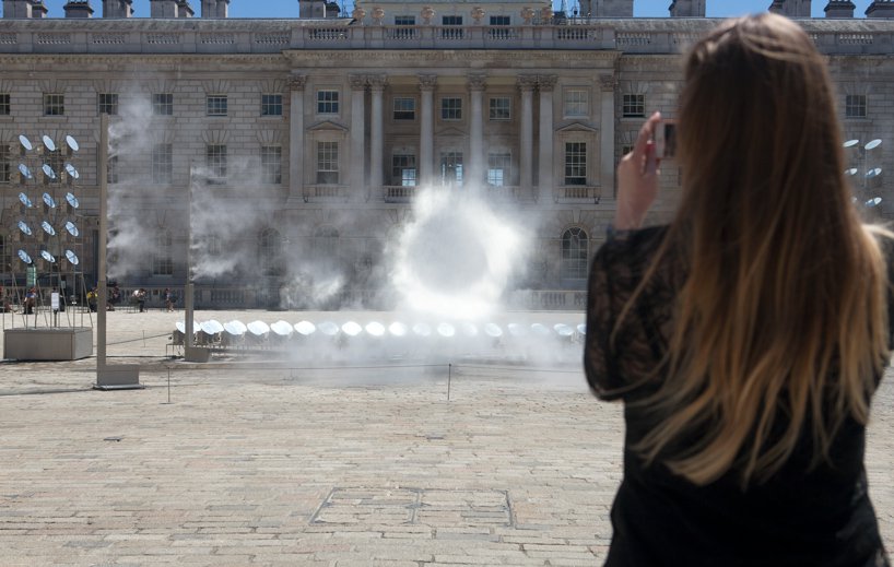 به گزارش گالري آنلاين، اشعه هاي خورشيدي با بيش از 100 آينه موتوري هدايت مي شوند. اين آينه ها، در سراسر دو برج به بلندي 4 متر و يک مسير 15 متري کشيده شده اند و در امتداد خورشيد در طول روز حرکت مي کند. با اين آينه، نور خورشيد طبيعي به شکل هاله شکل گرفته است، که درون هوا پخش مي شود و از طريق جت هاي آب گرم در يک ابر از مه، قابل مشاهده است. اين اولين بار است که kimchi and chips با نور کاملا طبيعي و نه مصنوعي کار مي کنند. زيرا ديد هاله کاملا وابسته به قدرت خورشيد است.
