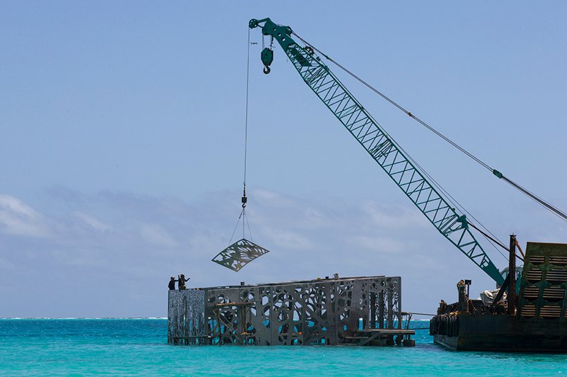 به گزارش گالري آنلاين، اين پروژه اولين پروژه مرجاني جزيره است و داراي يک فضاي گالري نيمه شناور و نيمه غرق شده است که مجموعه اي از آثار مجسمه را به نمايش درآورده است.