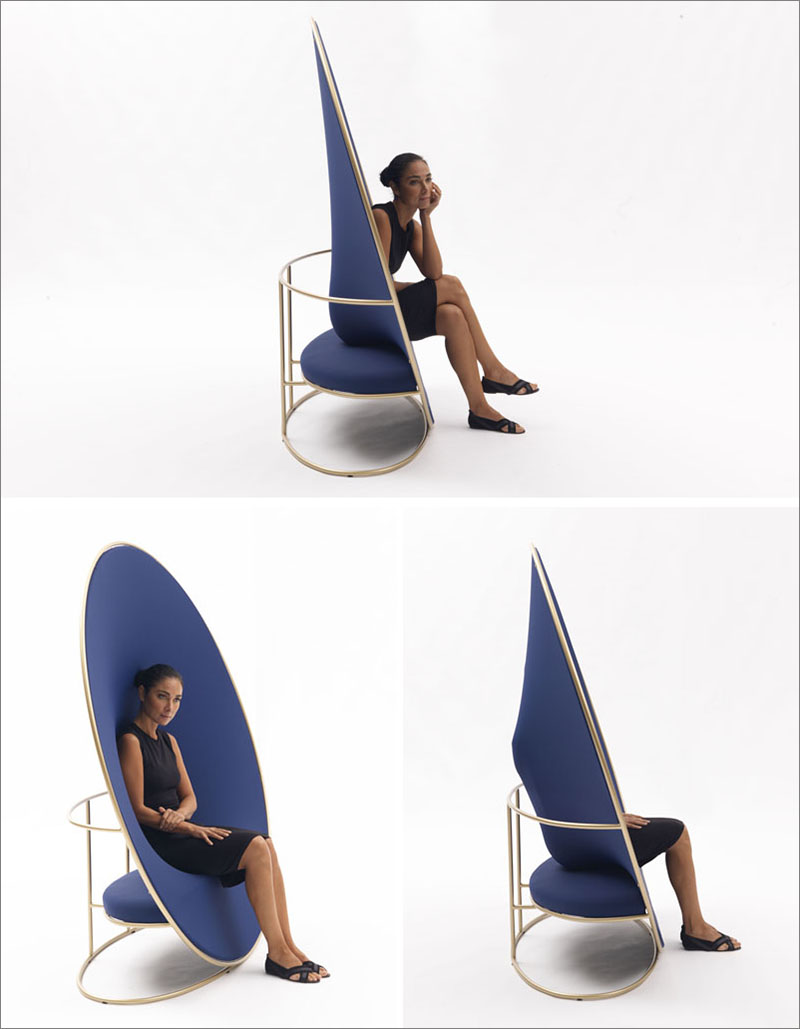 هنرمند طراح Emanuele Magini يک صندلي مناسب عکاسي در حوزه مد طراحي کرده است که مخاطب نميتواند تشخيص دهد مدل روي يک صندلي نشسته و تجسمي از شکل ديوار را ايجاد ميکند.