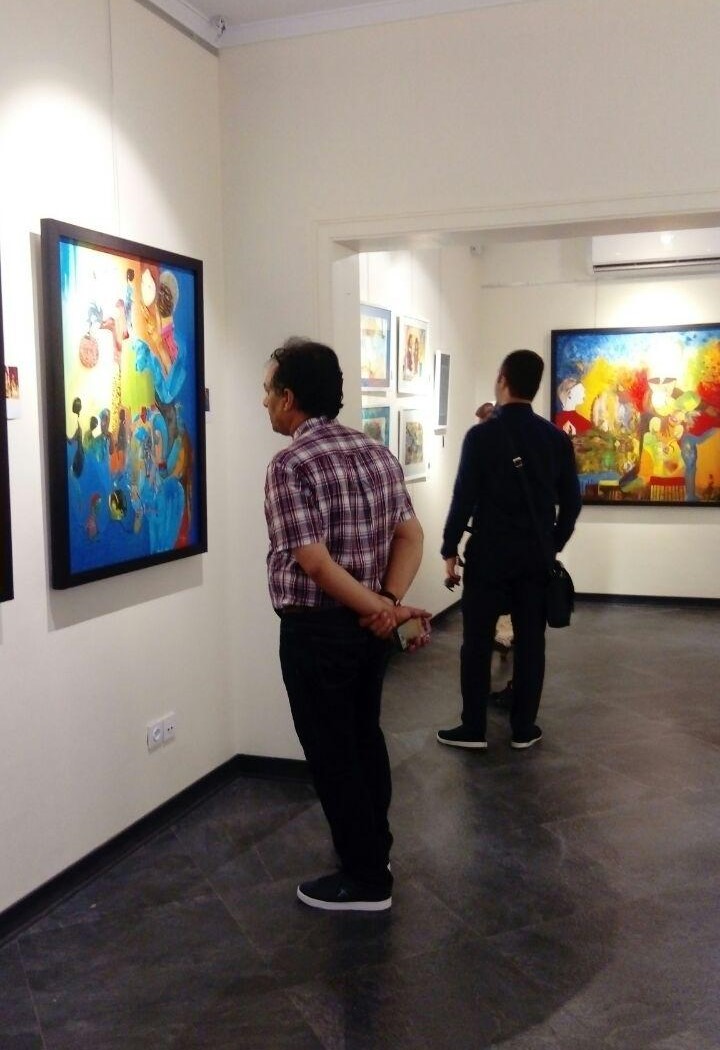 آنچه شما در لابلاي سکوت رنگها و فرم ها در نمايشگاه مشاهده خواهيد کرد، فريادهاي انساني است عاصي که در عين تکه تکه شدن و غريب بودن بر روي بوم و کاغذهاي آغشته به رنگ، دل به اميد چشم هاي بينا و گوش هاي تيز شما خوش کرده تا شايد بتواند با طرح سؤال حداقل سهم خود را در بيان حقيقتي تلخ ادا کرده باشد.
