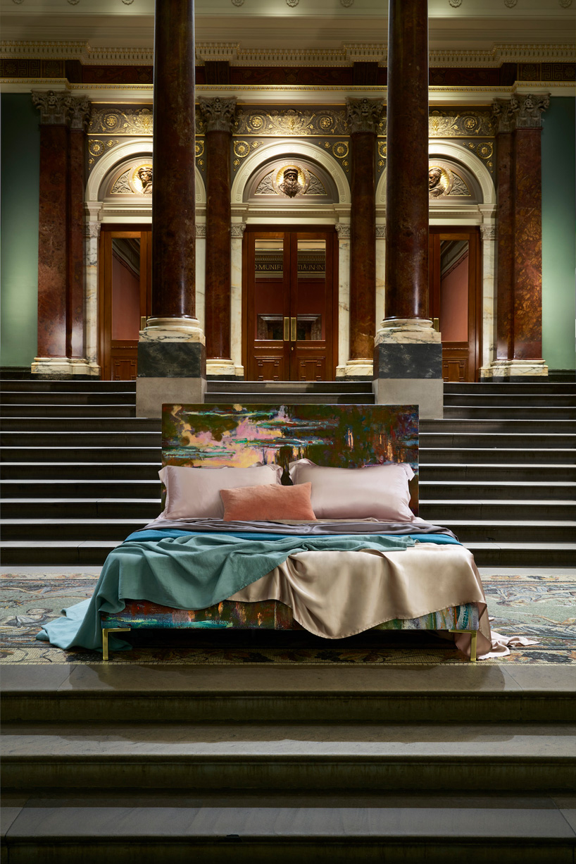 به گزارش گالري آنلاين، در يک مشارکت منحصر به فرد، اين زوج مي‌توانند هر نقاشي‌اي موجود در مجموعۀ گالري را روي پارچه‌هاي مخمل، کتان يا نخي چاپ کنند و به صورت دستي آن را روي تختۀ بالاي سر يکي از تخت‌هاي لوکس سفارشي savoir روکش کنند.