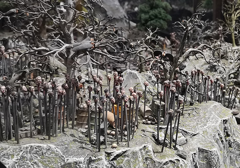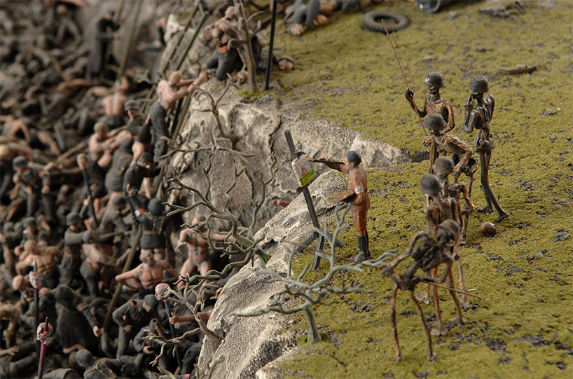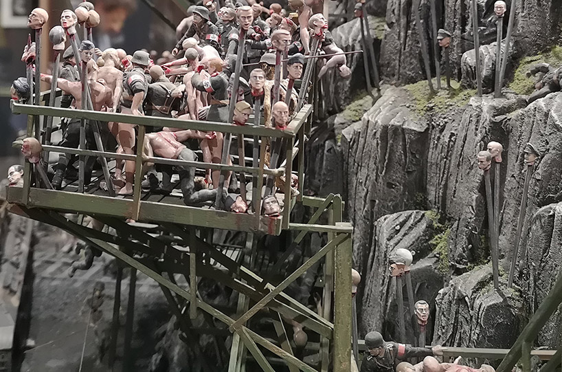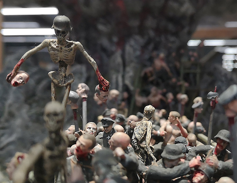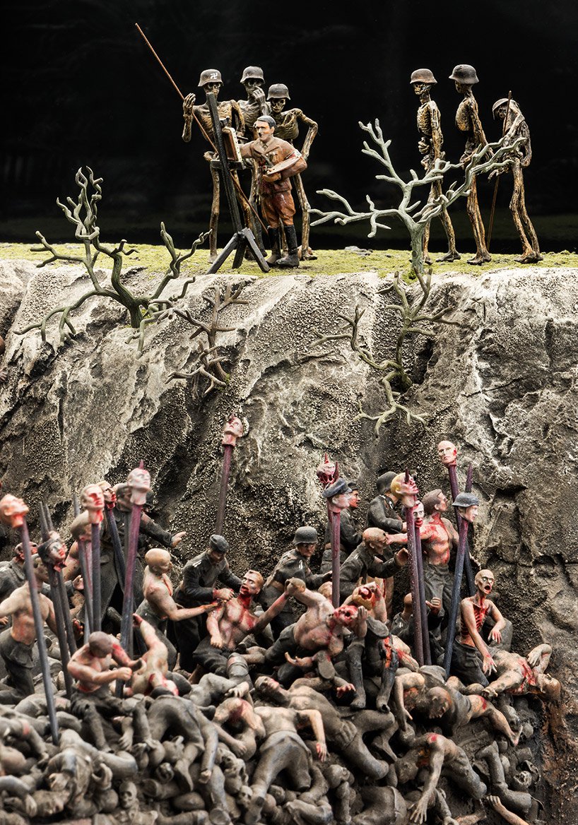 به گزارش گالري آنلاين، صحنۀ اين اثر انباشته از اسباب بازي هاي پلاستيکي مينياتوري از سربازان نازي است که با خشونتي گروتسک و سوررآل در حال قتل عام هستند. در اين صحنۀ وحشتناک هر يک از آدمک ها در حال بريدن سر يا نابود کردن ديگري است، و فاتح يا قربانيِ قابل شناسايي وجود ندارد.