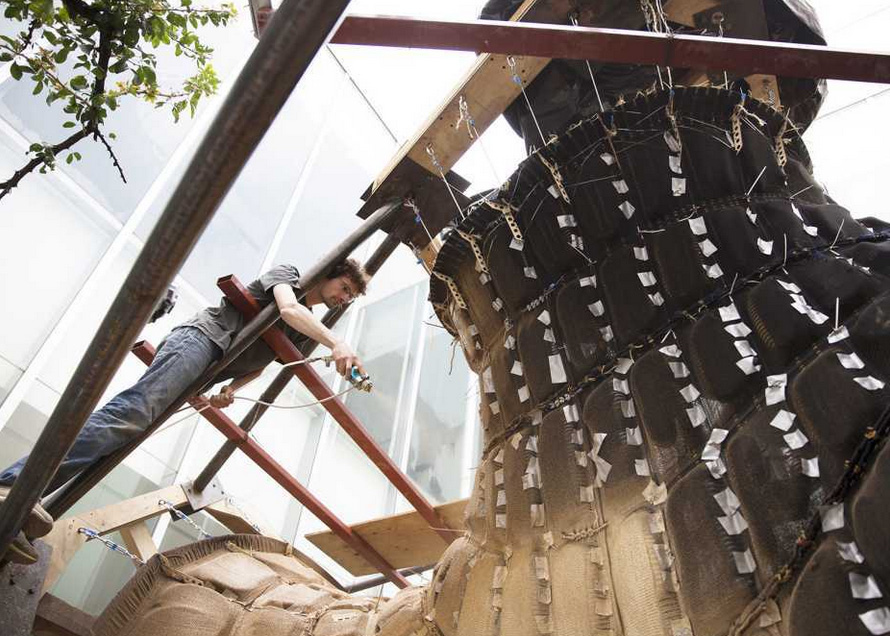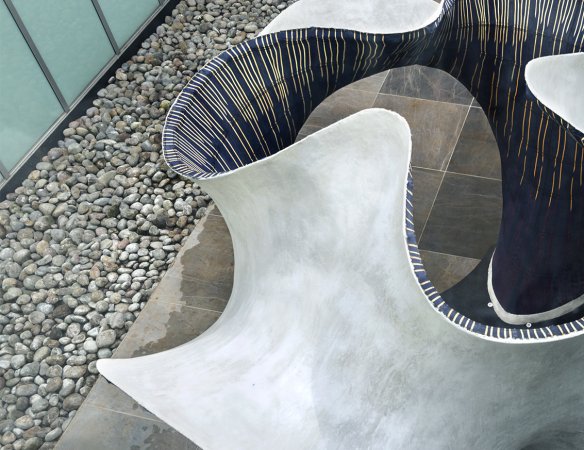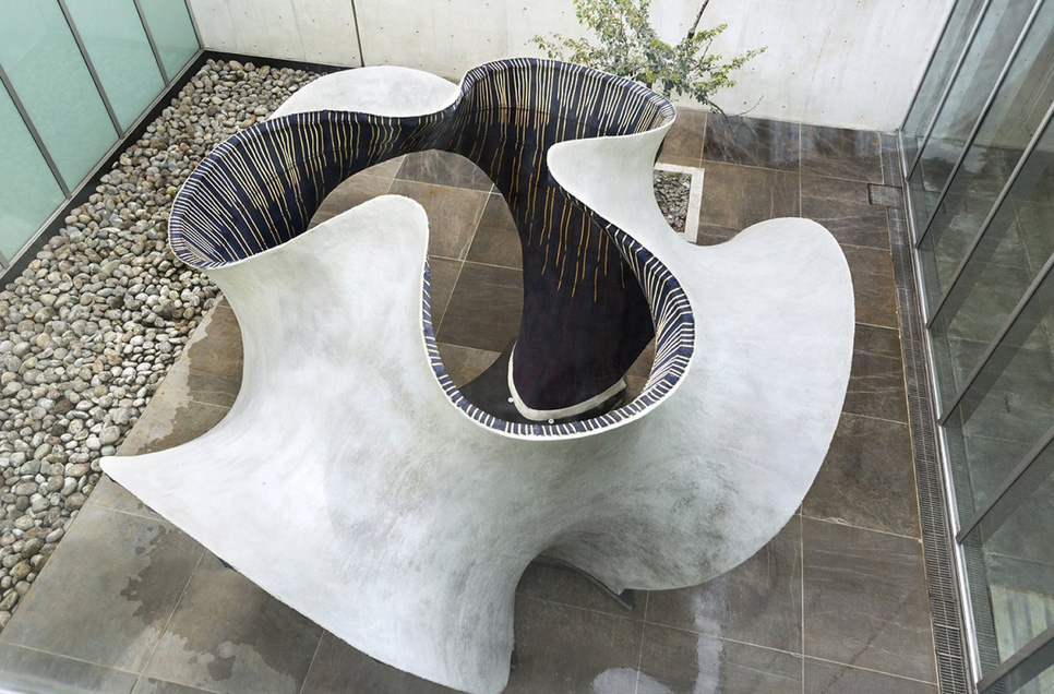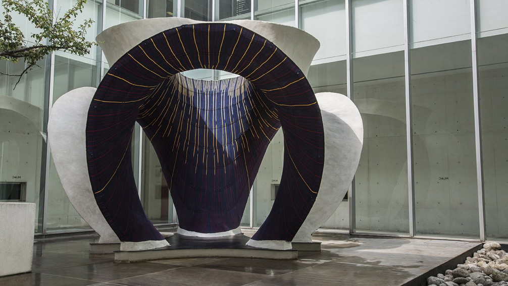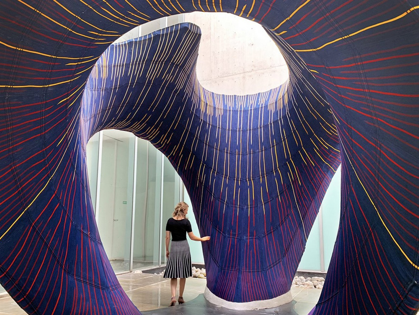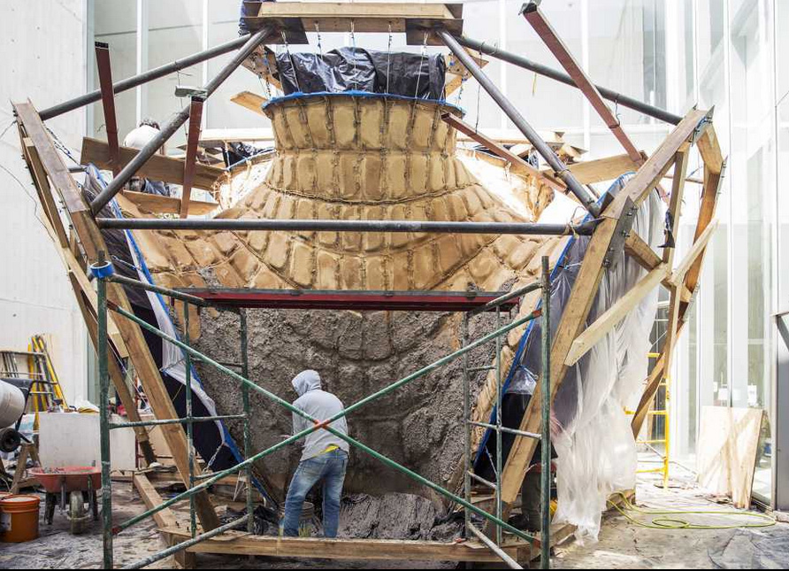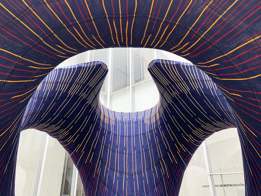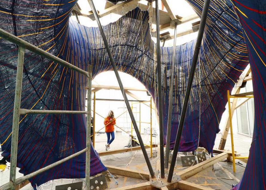 يک سازه بتني پنج تني به عنوان بخشي از نخستين نمايشگاه ZHA است که پارچه بافته شده شامل 350 کيلومتر نخ به وزن 25 کيلوگرم از مکزيک تا زوريخ درون دو چمدان شطرنجي حمل شد.