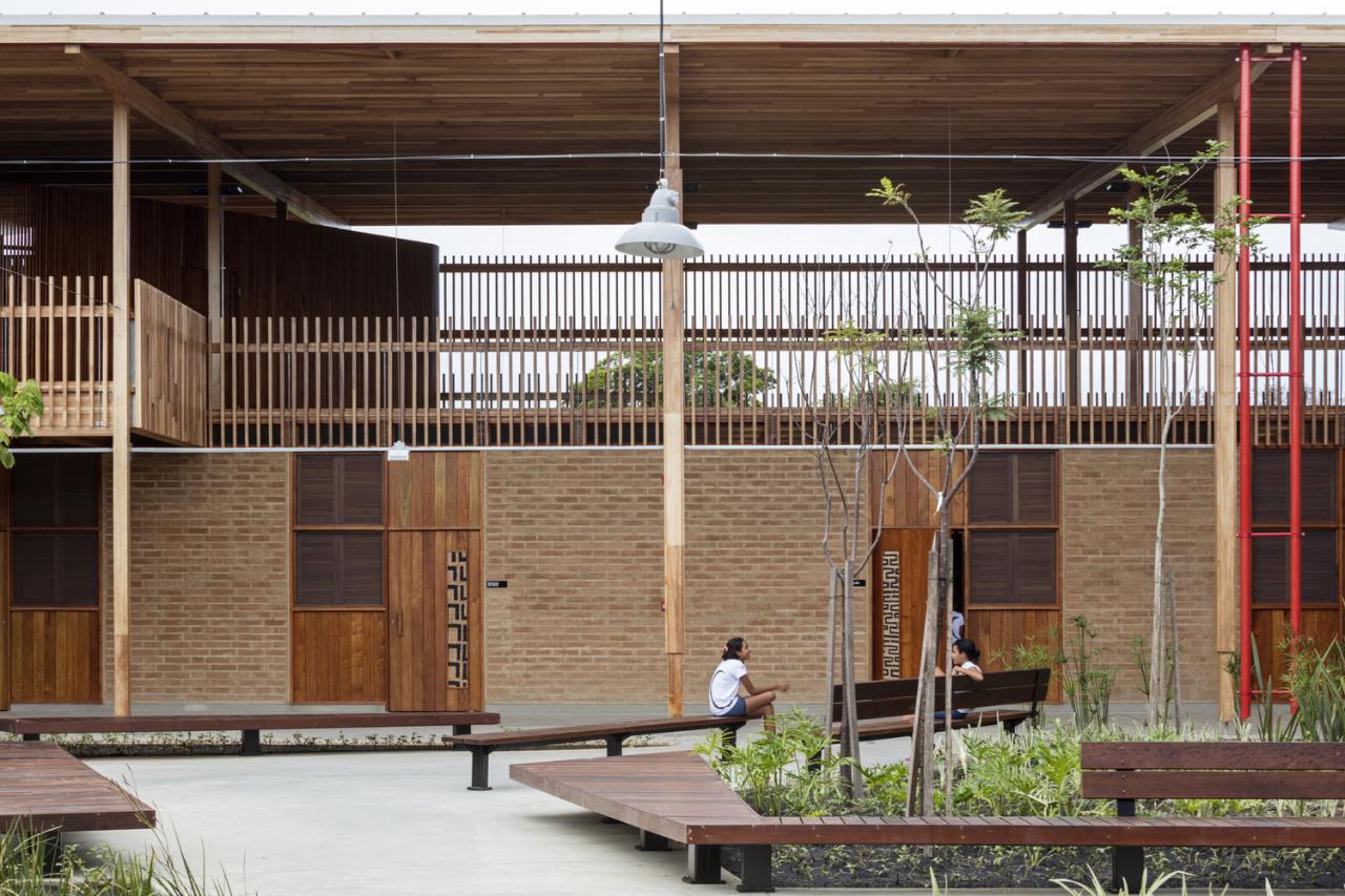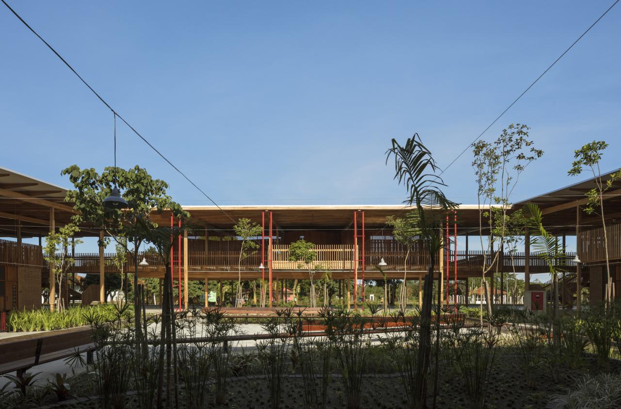 به گزارش گالري آنلاين، اين مجموعه مدرسه اي در لبه جنگل باران در شمال برزيل است و محل اقامت 540 کودک در مدرسه کانو را فراهم مي کند.