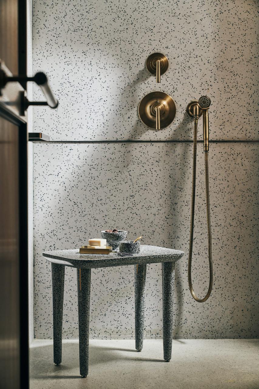 استوديوي Joyce Wang که نامش در shortlist جايزۀ Dezeen براي بهترين طراح داخلي سال قرار دارد گفت: «ما مي خواستيم زيبايي موزائيک را نشان دهيم و مرزبندي هاي متريال و ساخت اشيا را از ميان برداريم.»