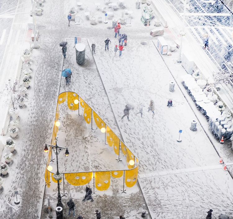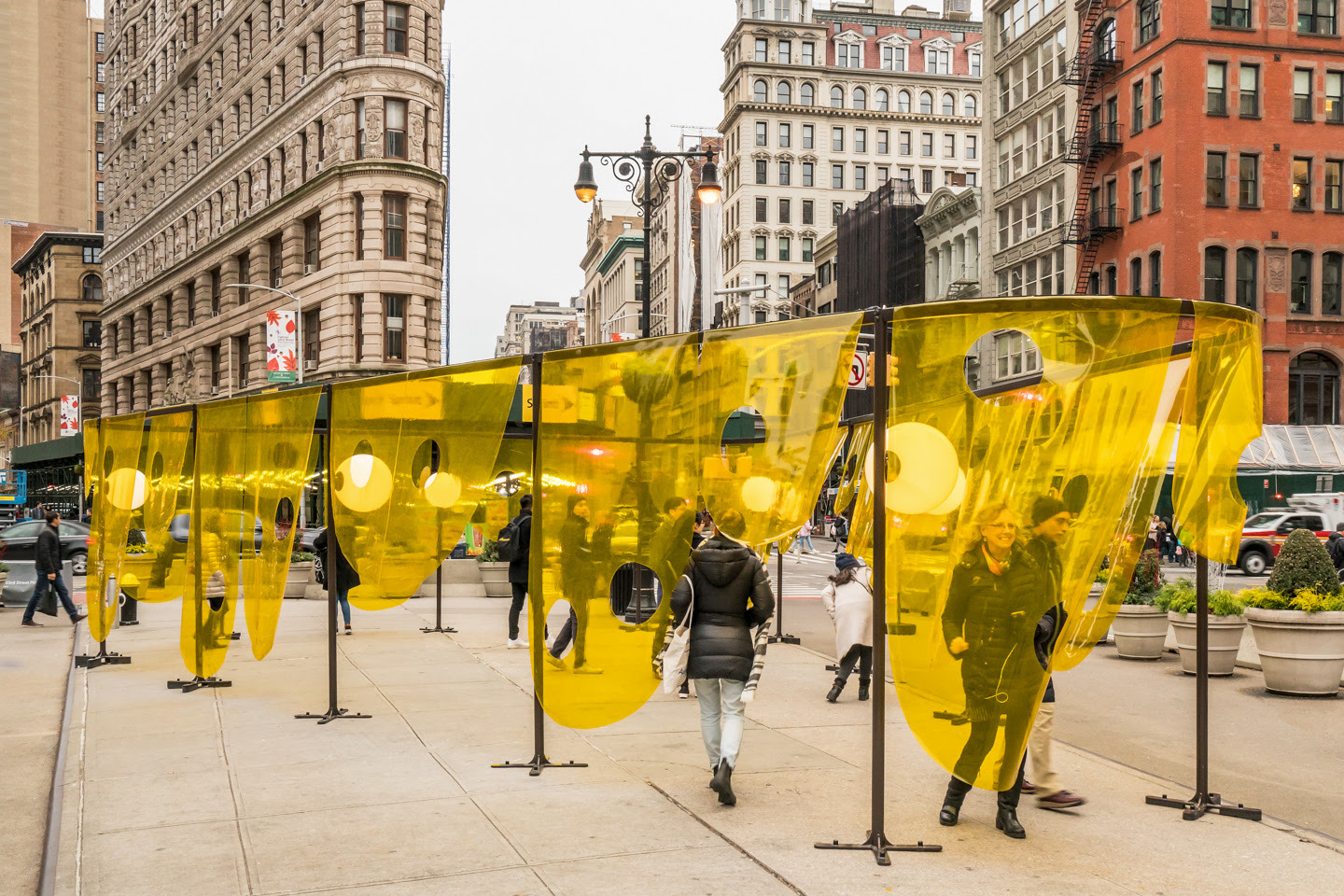 اين خيابان به عنوان محل برگزاري جشن ها در تقاطع خيابان 23، Broadway و Fifth Avenue واقع شده است. چيدمان شامل مجموعه اي از صفحه هاي زرد ضخيم از يک قاب باز به منظور ايجاد يک فضاي جمعي صميمي است و يک فيلتر آنالوگ براي ديدن شهر در نور هاي مختلف ارائه مي دهد.