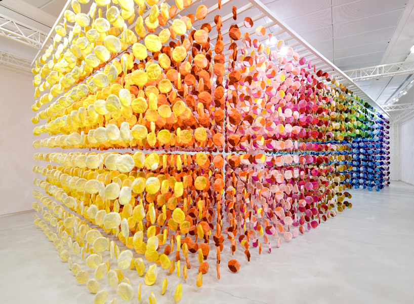 هنرمند Emmanuelle Moureaux چيدمان "knit in 100 colors" را به عنوان بخشي از نمايشگاهي ويژه خلق کرد که توسط Uniqlo در هفتهي مد پاريس 2018 در ماه سپتامبر و در galerie nationale du jeu de paume برگزار شد.