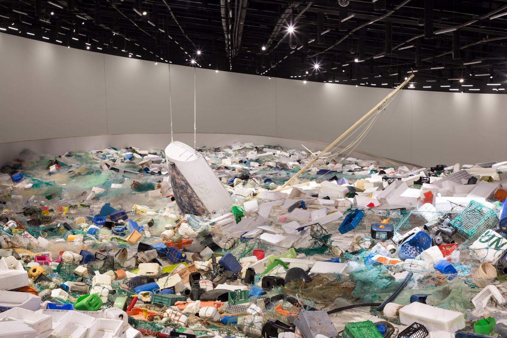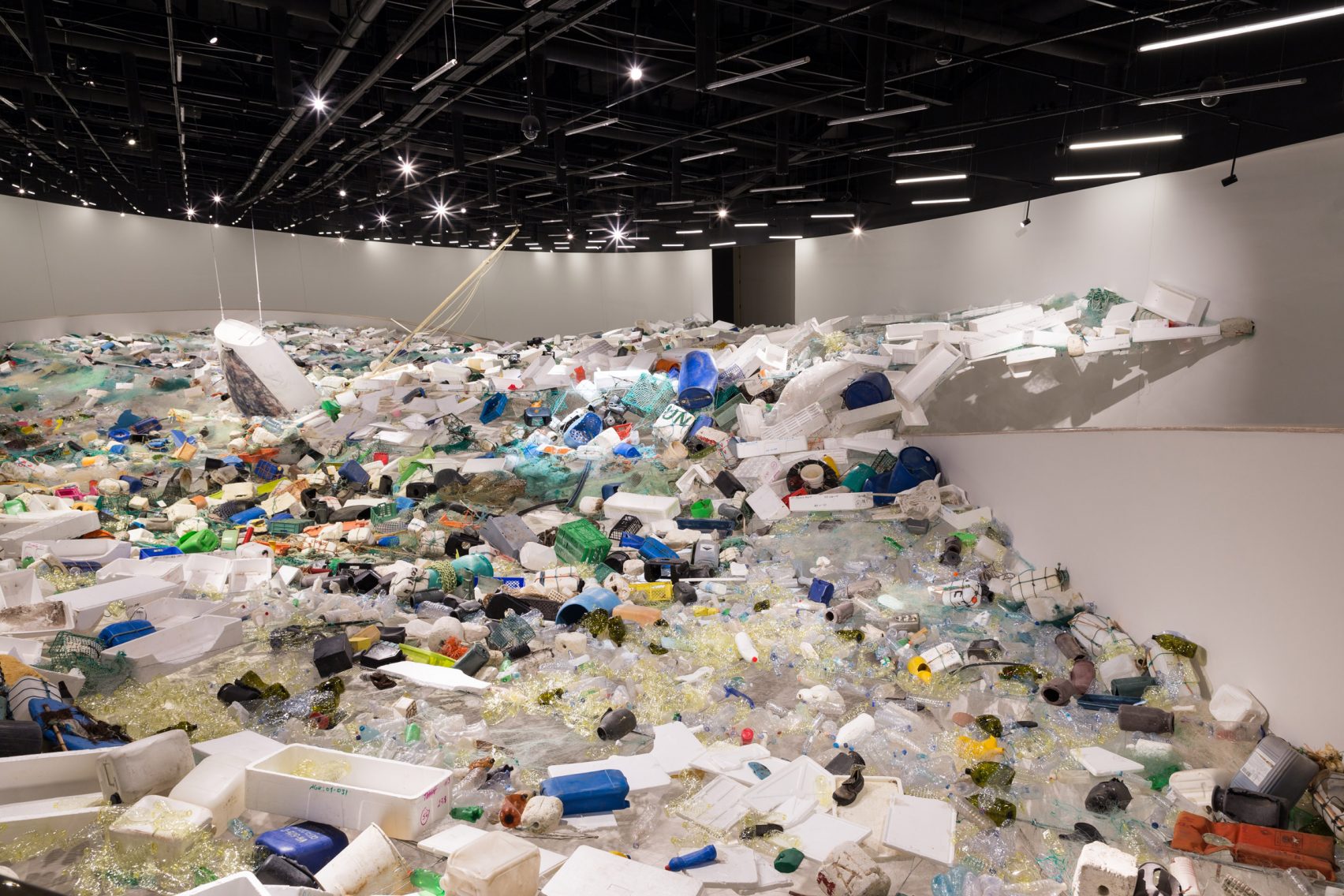 به گزارش گالري آنلاين، نام اين نمايشگاه "سرريز" است و به سفارش موزۀ پرتغال برگزار شده و هدفش هشدار دادن در مورد ازدياد زباله ها در اقيانوس است.