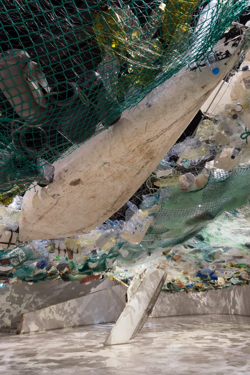 هنرمند ساکن پاريس Tadashi Kawamata اينستاليشني از پلاستيک در گالري Oval موزۀ هنر، معماري و تکنولوژي ليسبون چيده است.