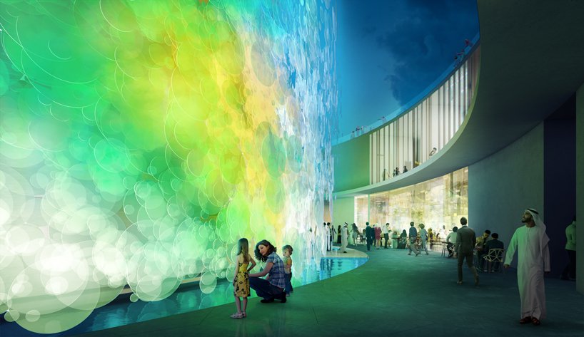 تمام رنگ هايي که در پاويليون وجود دارد متعلق به پرچم کشورهايي است که در نمايشگاه شرکت کرده اند و نشان دهنده وحدت، همکاري و امکانپذيري است. سايه هايي که روي هم مي افتند بيانگر موضوع اکسپو هستند که اتصال ذهن ها و ساختن آينده است. اين طرح از ميان بيش از 100 طرح رسيده انتخاب شده و طرح es devlin به عنوان برندۀ نهايي انتخاب شد.