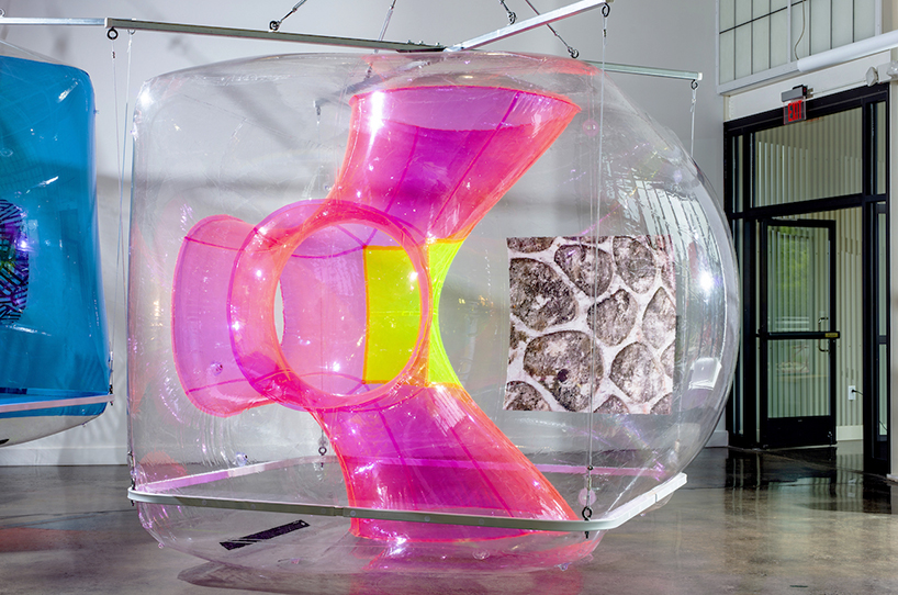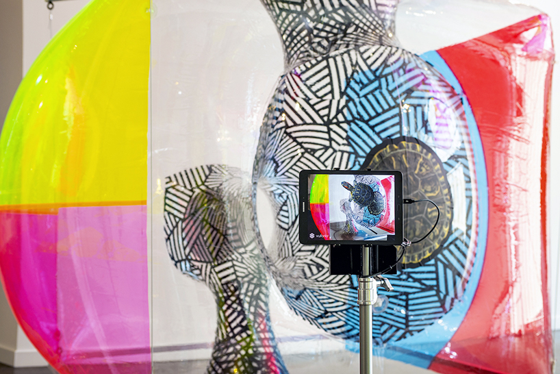 کيوريتورهاي اين مجموعه Michael rees و tom moran از ابتدا قصد داشتند تا نمايشگاه را به صورت تجربه اي گروهي برگزار کنند که اجسام آويزان شده به عنوان سايتي براي واقعيت افزوده عمل کنند. اين ساختارهاي متورم که از دهه 1960 در مبلمان، معماري و اسباب بازي هاي آرمانشهري به کار گرفته مي شدند بروز رساني شده اند تا تجربه اي چندلايه روي آنها اجرا شود و پورتالي براي فضاهاي ديگر باشند.