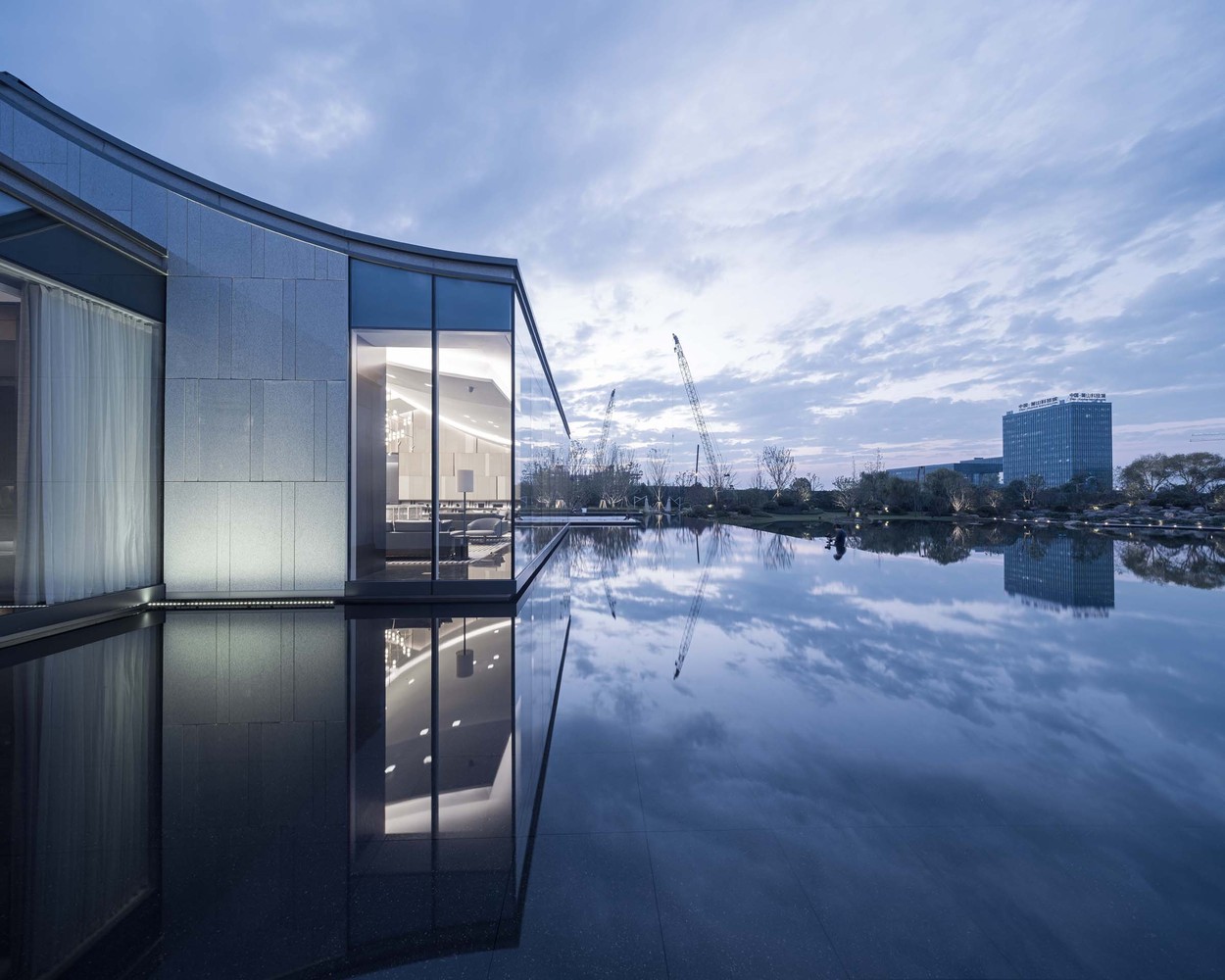 به گزارش گالري آنلاين به نقل از آرل، ساختمان Jiangnan کنار درياچه اي قرار گرفته که از مزيت مناظر و چشم اندازي زيبا برخوردار بوده و به زيبايي با عنصر آب ادغام شده است. سقف هاي شيب دار، ديوارهاي سفيد مينيماليستي، و کاشي هاي سياه يک تصوير بصري واضح و شفاف را ايجاد کرده اند که به ساختمان تصويري ريتميک و پيوسته داده است. نماي ساختمان با چشم انداز کوه ها و رودخانه هاي Jiangnan پيوند خورده است تا کيفيت چنين پروژه اي را بيش از پيش ارتقا دهد.