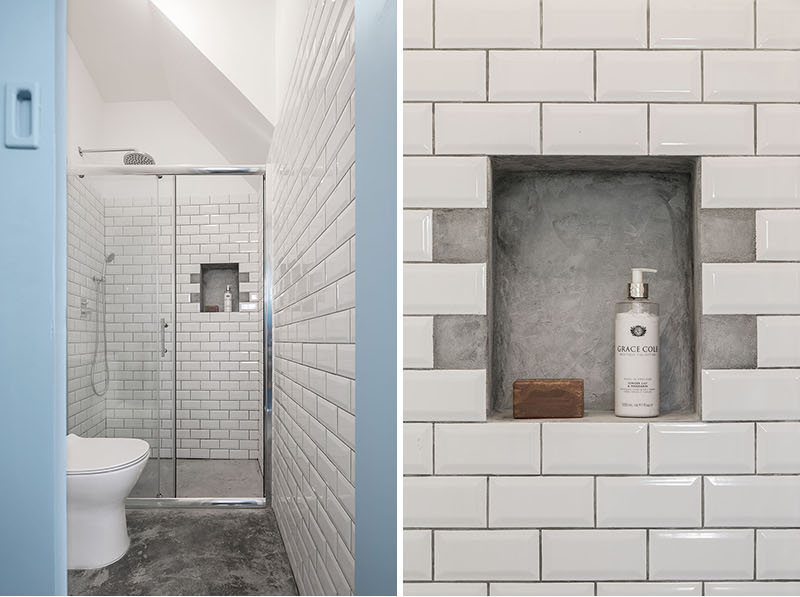 به گزارش گالري آنلاين، در قسمت ورودي سرويس بهداشتي و حمامي کوچک و با سبک معاصر به همراه کاشي هاي سفيدرنگ و قفسه اي ساخته شده و قسمت حمام و سرويس بهداشتي توسط درب شيشه اي از هم مجزا گشته اند.