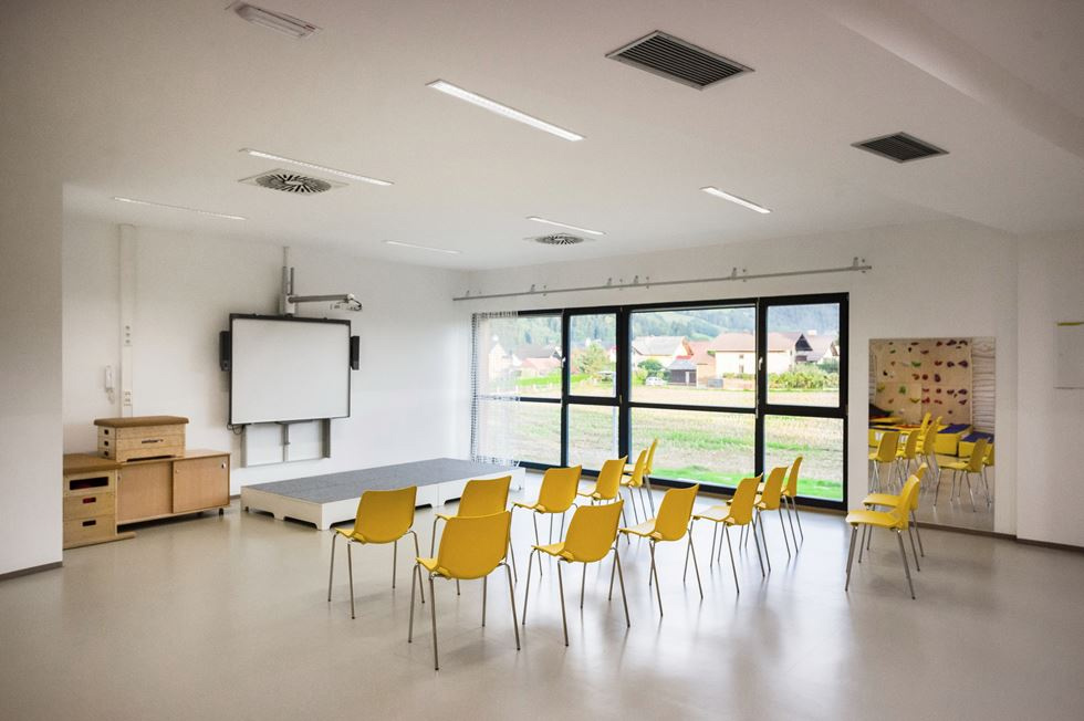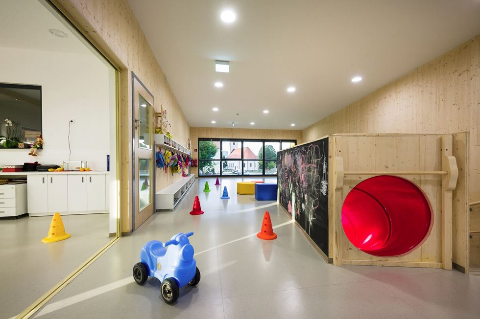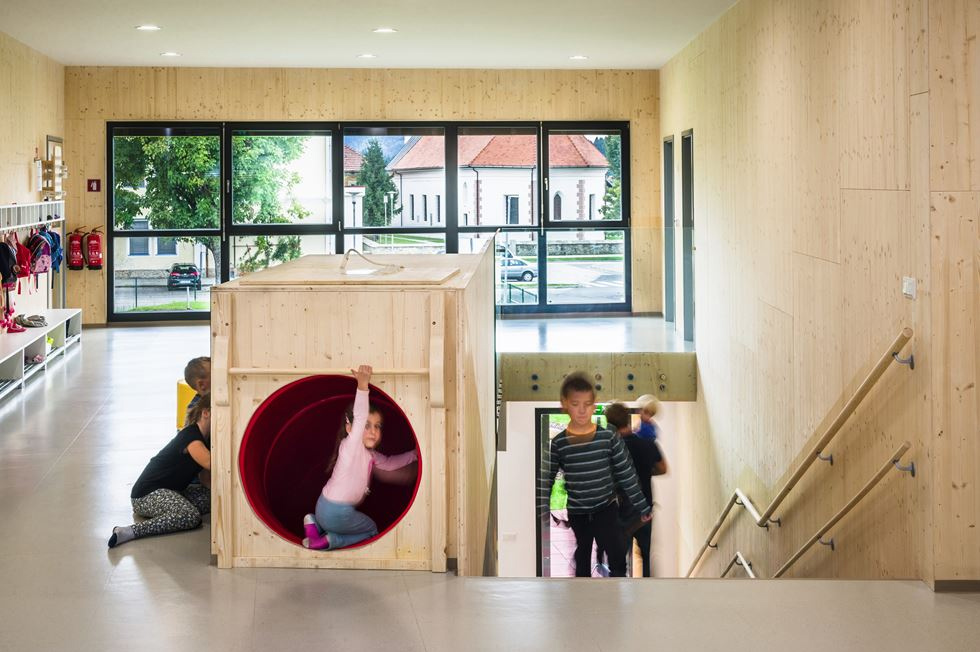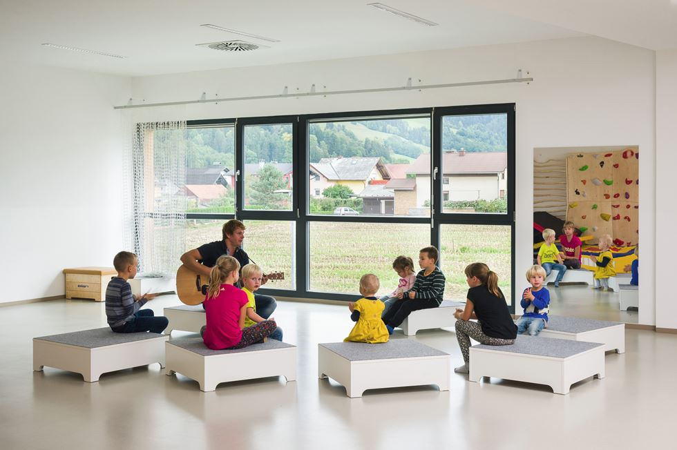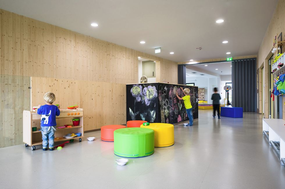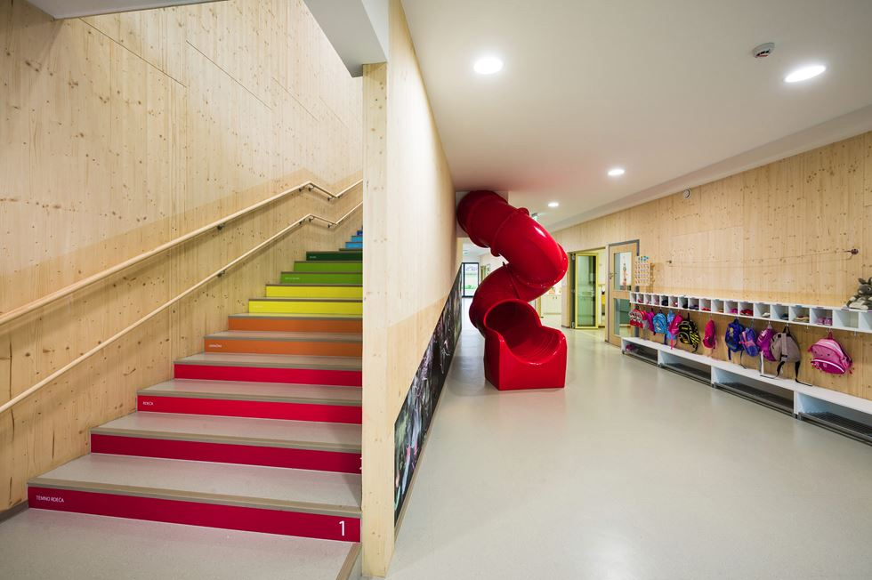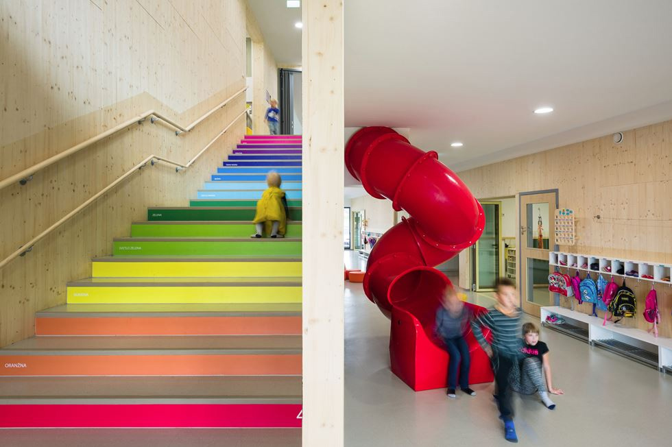 هسته اصلي ساختمان يک منطقه مرکزي چند منظوره با پله هاي رنگارنگ چند منظوره است که به کودکان کمک مي کند تا رنگ ها و اعداد را ياد بگيرند و در طراحي ديوارهاي جانبي پله ها از تخته سياه به عنوان يک بوم بزرگ براي هنر و نقاشي کودکان استفاده شده است.