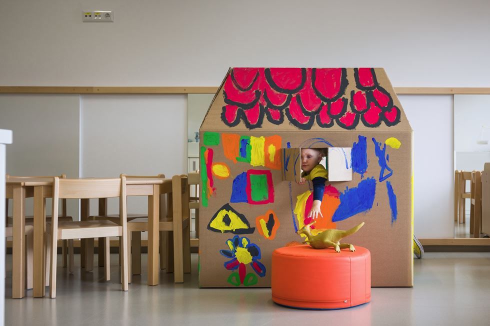 در طراحي داخلي اين فلسفه و هدف در فضاها مورد توجه قرار گرفته شده که به جاي هشت اتاق مشابه، هر اتاق داراي تجهيزات بازي و محيط هاي يادگيري متفاوتي است. بعضي از اتاق هاي بازي علمي تر و بعضي براي موسيقي و هنر يا ورزش، و يا فقط بازي طراحي شده اند.