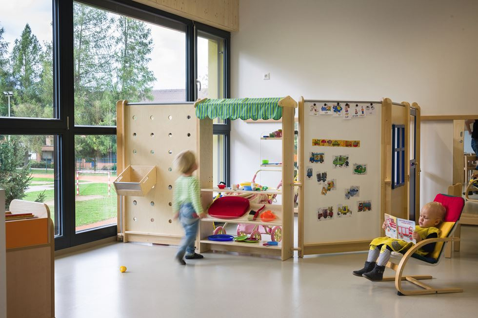 اين مهدکودک با هدف تشويق تعاملات، يادگيري موثر و کار گروهي طراحي و اجرا شده است. در طراحي داخلي از پلان بازي استفاده شده که شامل راهروها و پله هايي است که دسترسي و چشم انداز به کلاس ها را ممکن مي سازند.
