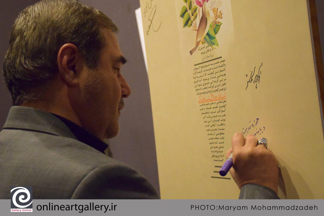 به گزارش گالري آنلاين، در اين رويداد عليرضا اسماعيلي، سرپرست فرهنگستان هنر، آيدين آغداشلو، هنرمند نقاش، گرافيست و نويسنده، دکتر حسن بلخاري، مديرگروه هنرهاي سنتي و صنايع دستي فرهنگستان هنر،دکتر مهدي حسيني، عضو پيوسته فرهنگستان هنر،ابراهيم حقيقي، عضو هيئت مديره انجمن صنفي طراحان گرافيک ايران، سيدمحمد فدوي، عضو هيئت علمي پرديس هنرهاي زيباي دانشگاه تهران، سخنراني کردند.