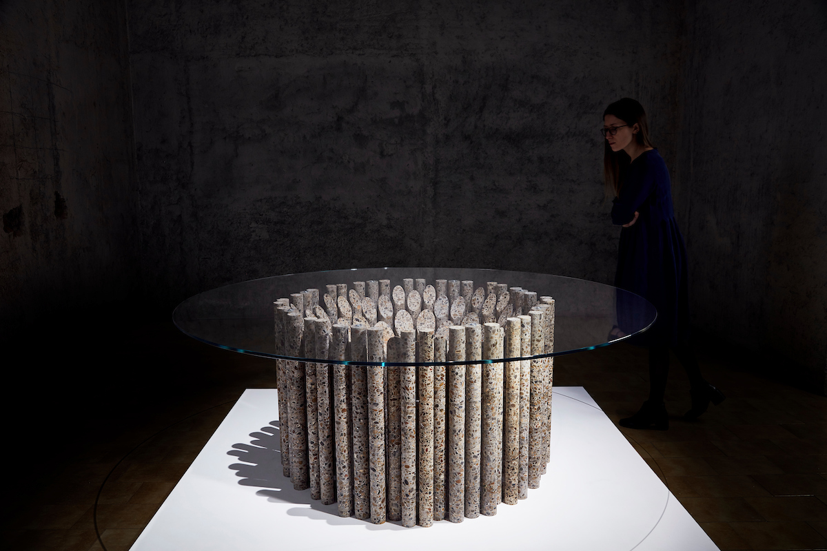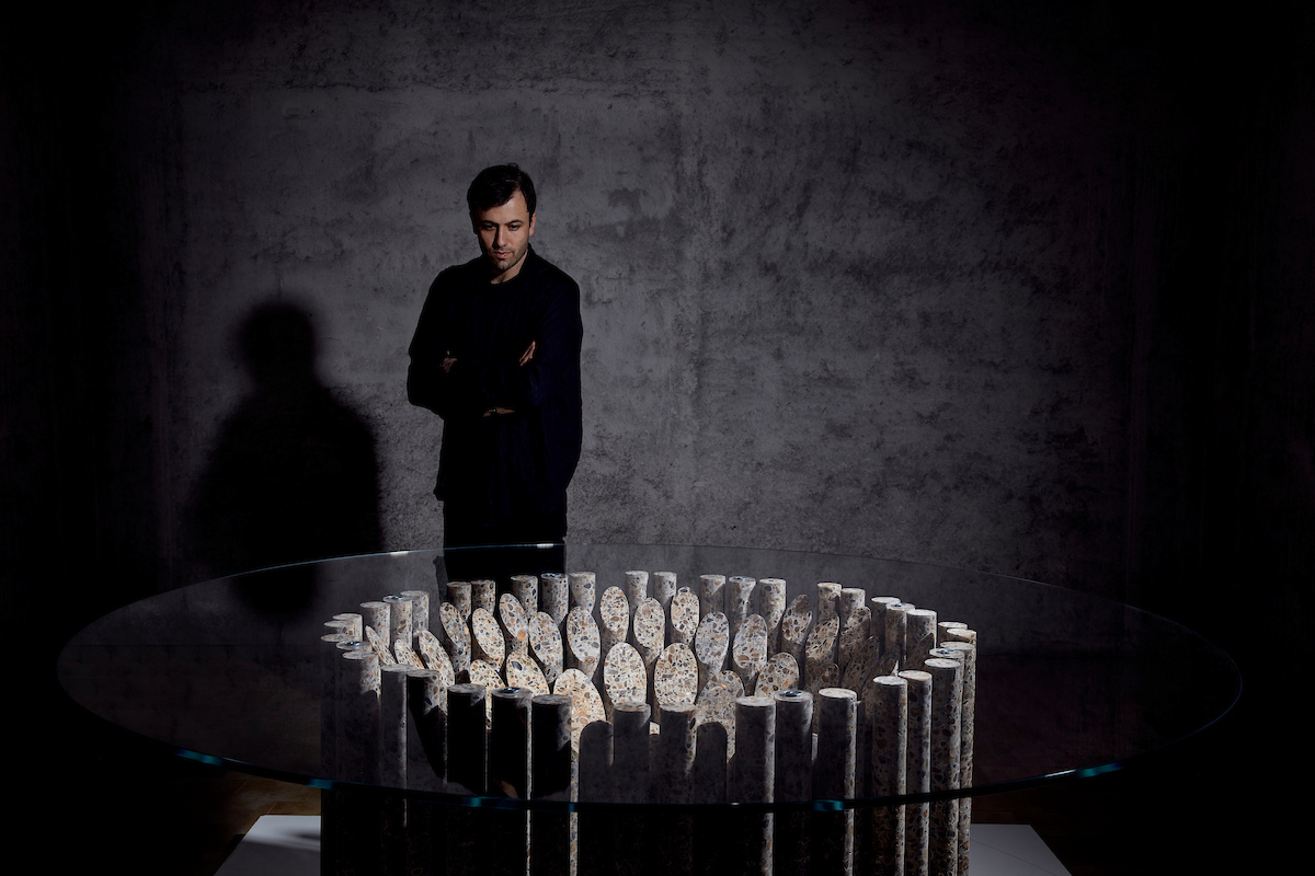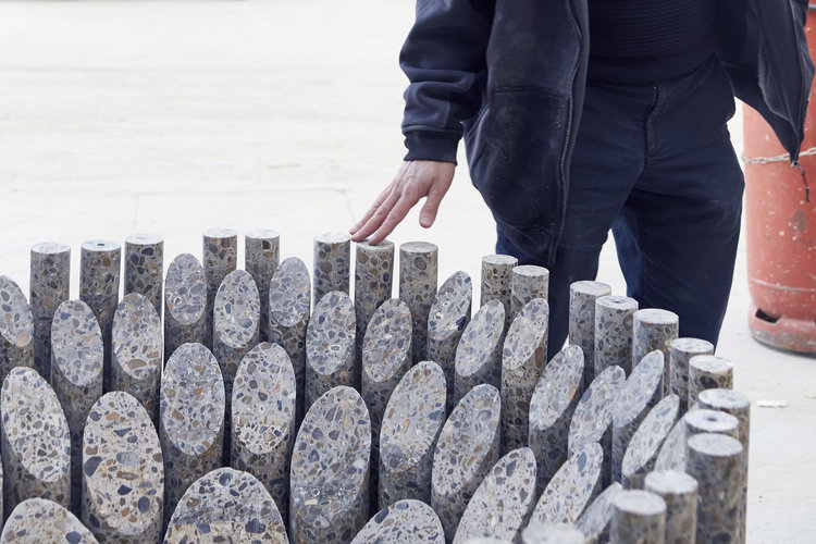 به گزارش گالري آنلاين، وي با برش و جلا دادن به قطعات مختلف دايره اي شکل شش ميز با اشکال مدرن ساخته است. هنرمند اميدوار است با ايجاد محصولاتي از بخش هاي ديواره ها و بدنه ساختمان به مخاطب گذار از طبيعت به سوي مدرنيته را يادآور شود.