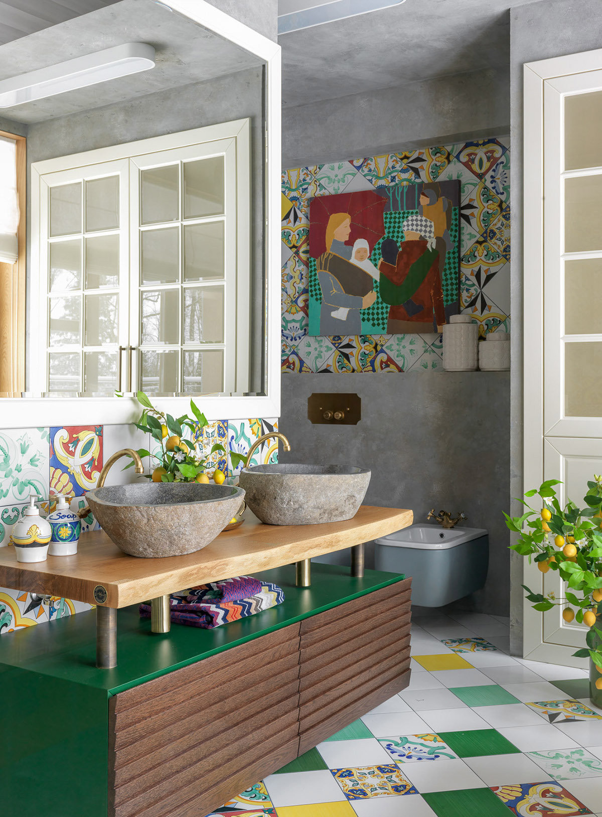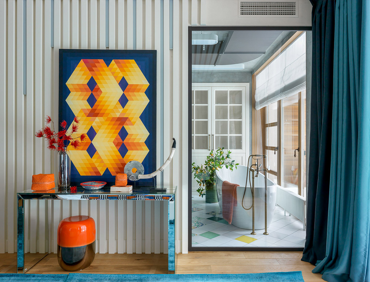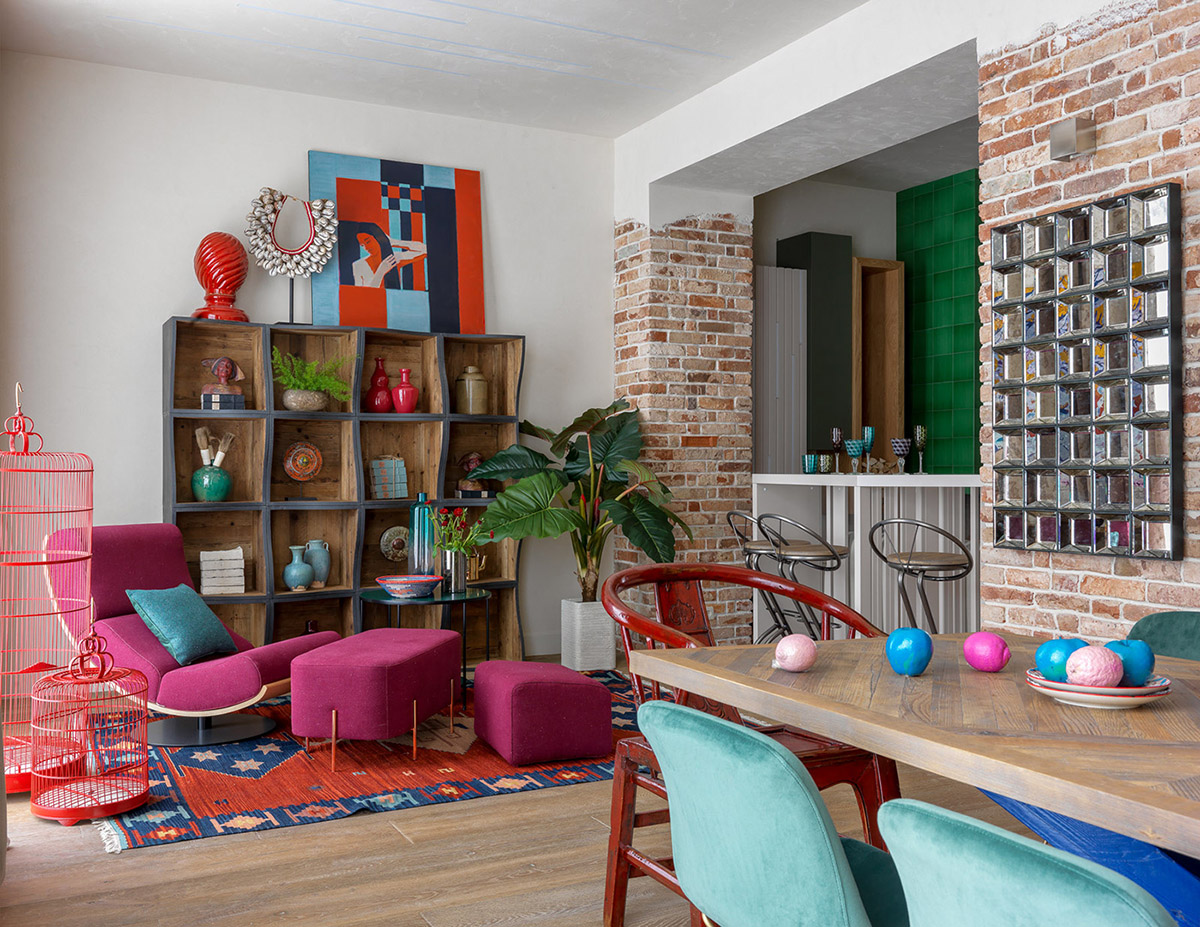 دکوراسيون داخلي اين خانه با احترام به مفاهيم کلاسيک و با ترکيب شلوغي از رنگ ها، الگوها و تم هاي شگفت انگيز و همچنين به همراه نورپردازي معاصر به روش هاي غير منتظره انجام شده است.