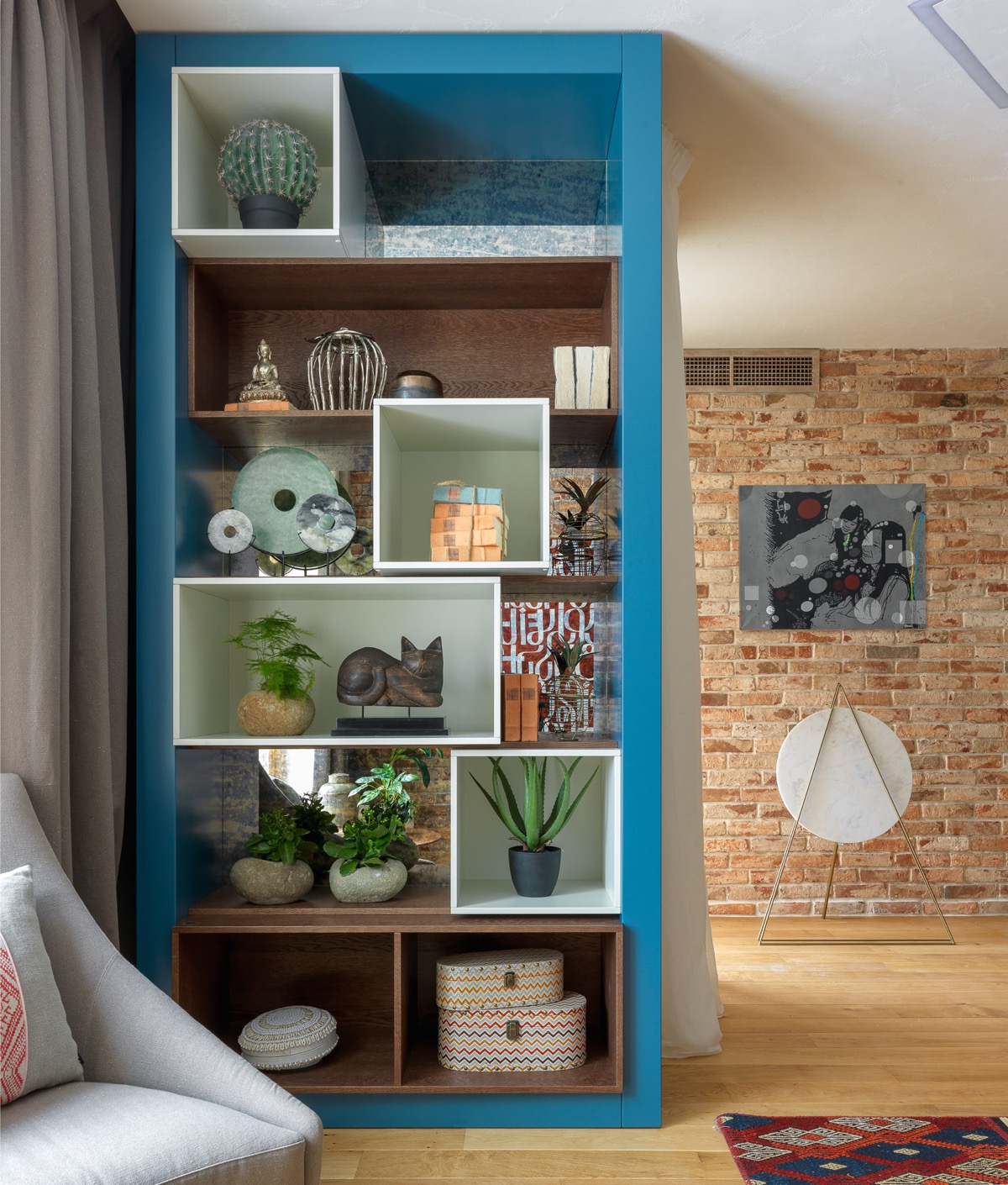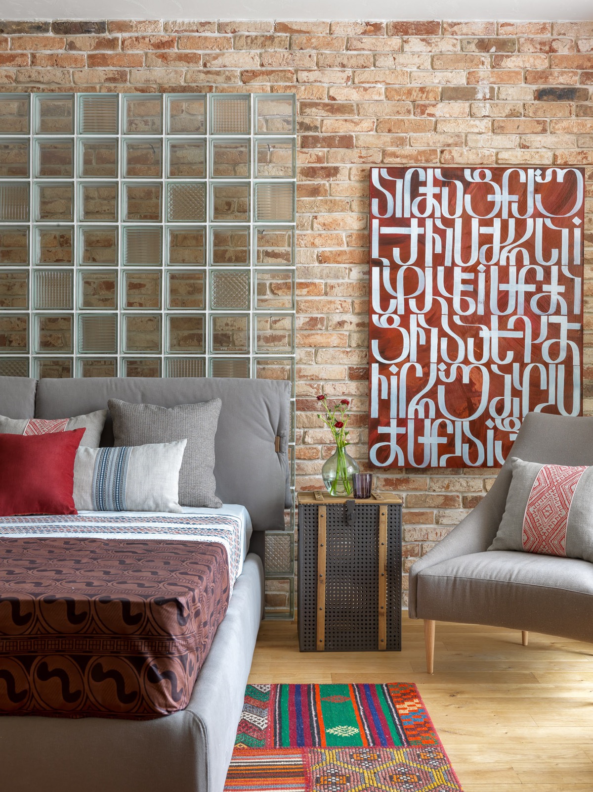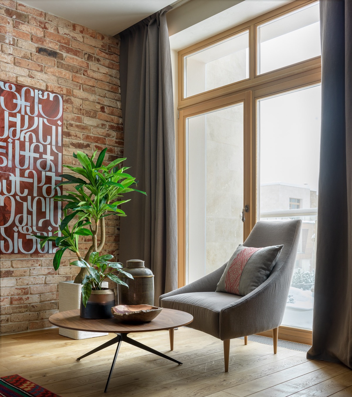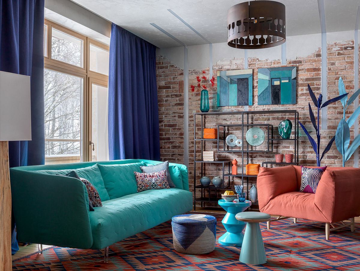 دکور آبي و نارنجي تم رنگي غالب اتاق نشيمن سوم را تشکيل داده و مبلمان کاربردي و راحت هويت ويژه اي به فضا بخشيده است، ديوارهاي آجري روستايي به عنوان خنثي کننده رنگ ها عمل کرده و ترکيبي از نقاشي هاي هنرمندان روسي و پارچه هاي پرطرفدار آفريقايي در دکوراسيون به کار رفته است.
