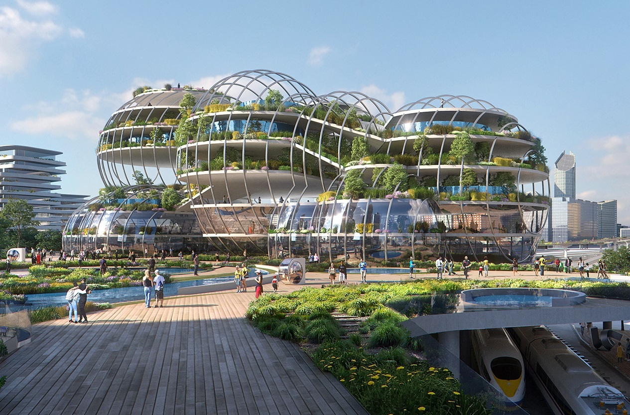 مفهوم UNStudio براي شهرک اجتماعي و فني، دو مورد از بزرگترين چالش پيش روي آينده شهر ها را شامل مي شود ، "شهرنشيني و پايداري".