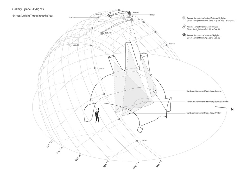 از نظر زيست محيطي، دهانه هايي در سراسر ساختمان قرار دارد که، هر يک با جهت گيري و اندازه هاي مختلف، نور طبيعي براي موزه را در طول سال فراهم مي کند. در عين حال، يک سقف از جنس شن و ماسه به ميزان قابل توجهي تابش حرارت تابستان را کاهش مي دهد و گرماي منبع انرژي خورشيدي با کمترين هزينه، جايگزين سيستم تهويه مطبوع سنتي مي شود.