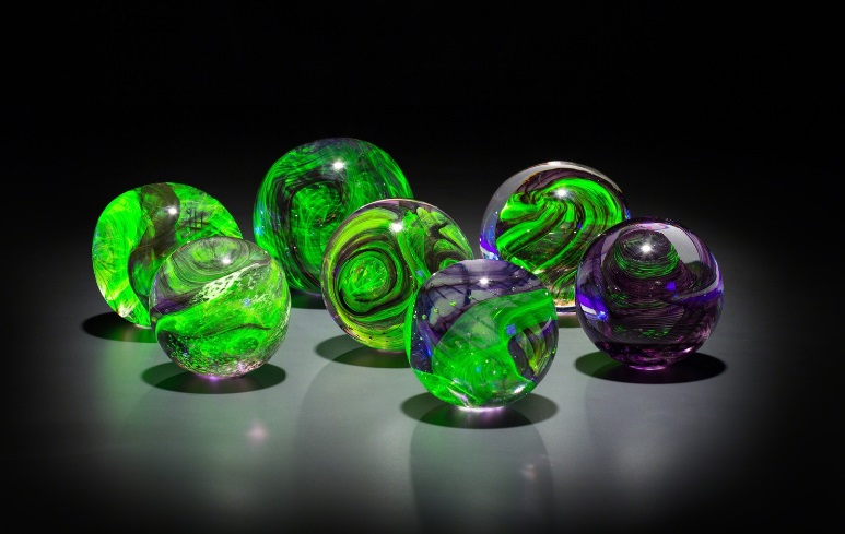 اين گويهاي شيشهاي، براي توليد يک درخشش افسون کننده نور، روشن ميشوند. زيبايي مغناطيسي بيننده را جذب ميکند و ما را بر آن ميدارد تا رابطه ناراحتکنندهاي که با مواد هستهاي داريم را مورد بررسي قرار دهيم.