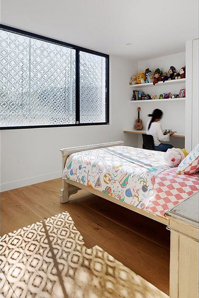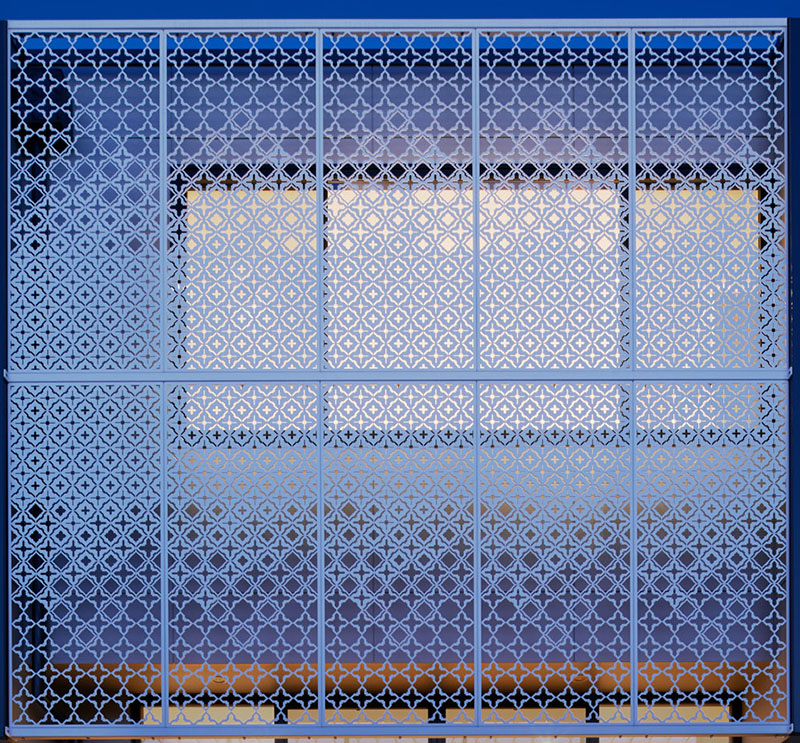 به گزارش گالري آنلاين، اين صفحه با داشتن ظاهر توري مانند، سطوح مختلفي از شفافيت را فراهم مي‌کند. همچنين حريم خصوصي اتاق‌هاي طبقه بالا را نيز فراهم و در طول روز سايه‌هاي جالبي ايجاد مي‌کند.