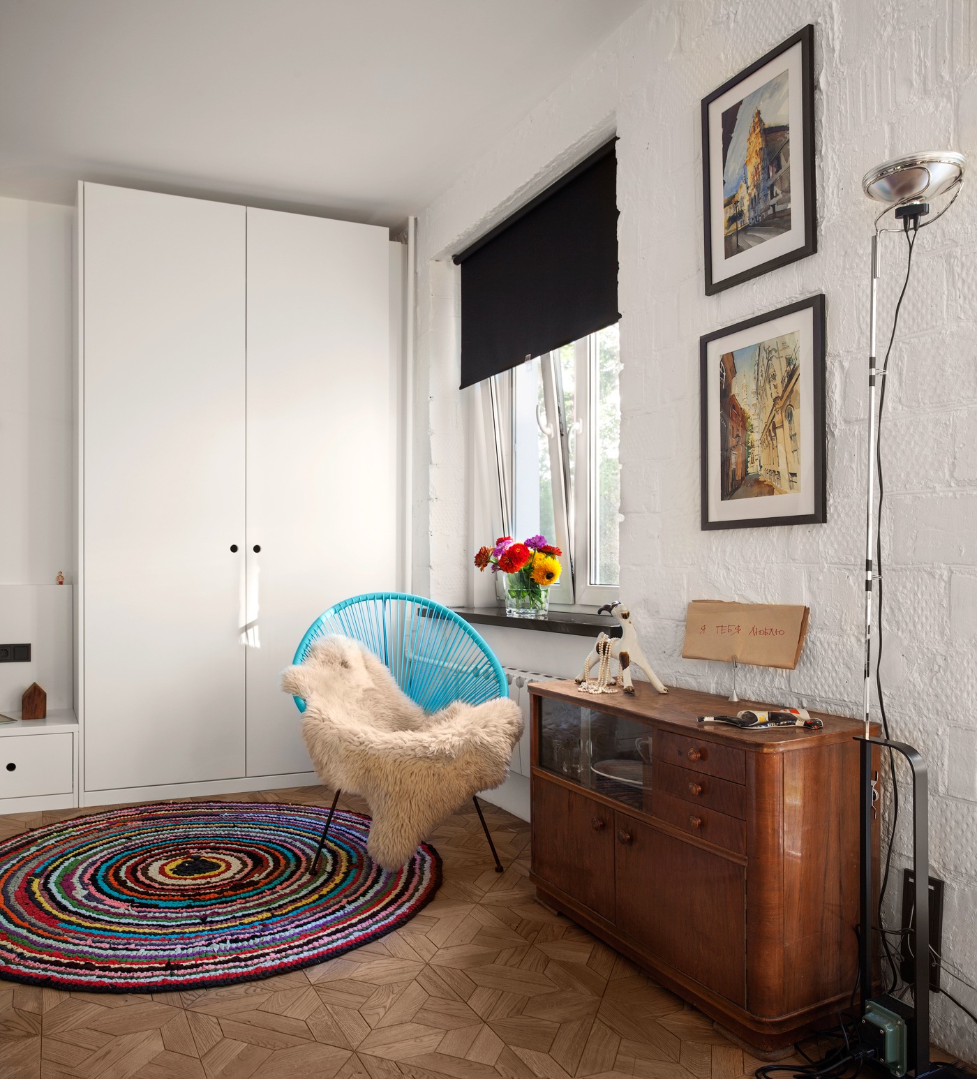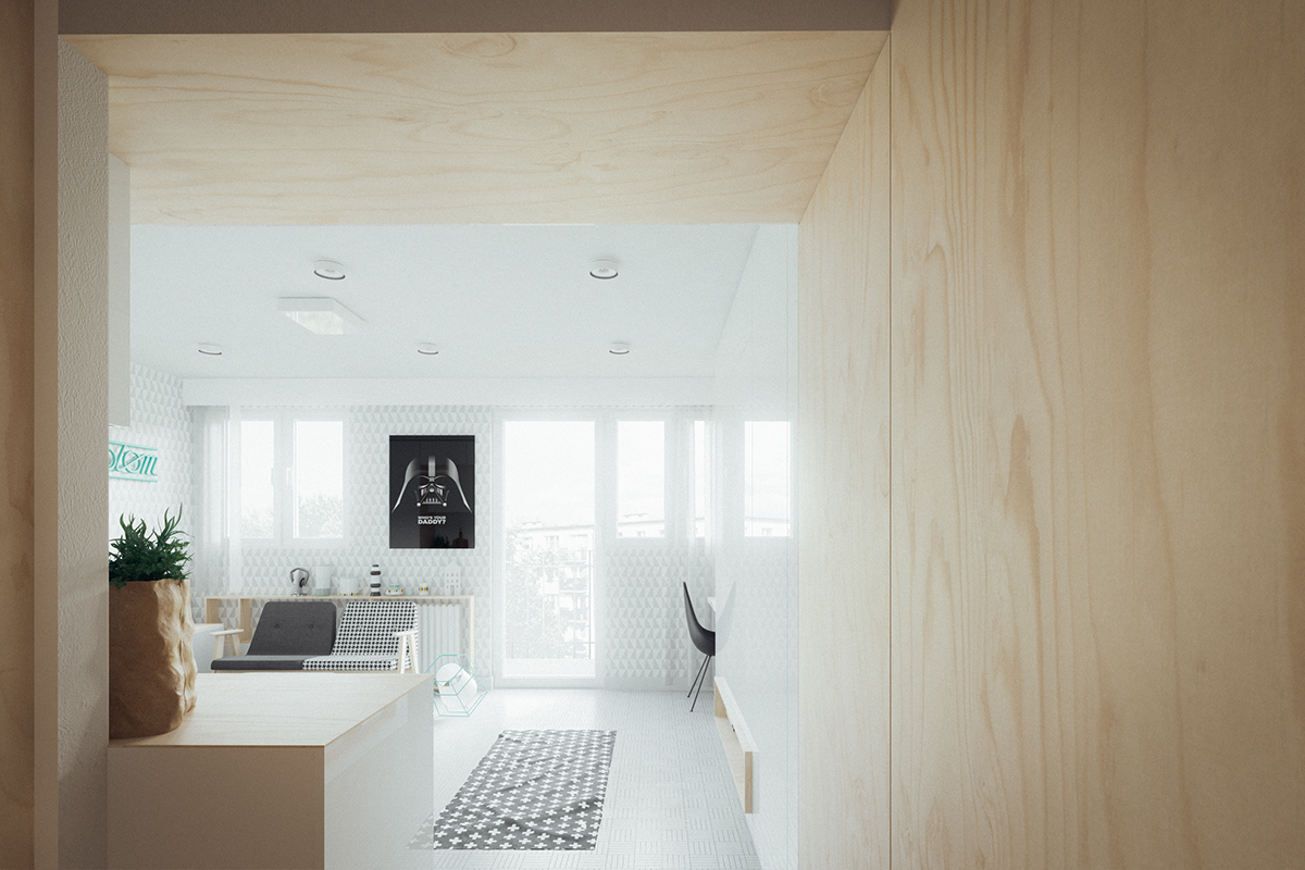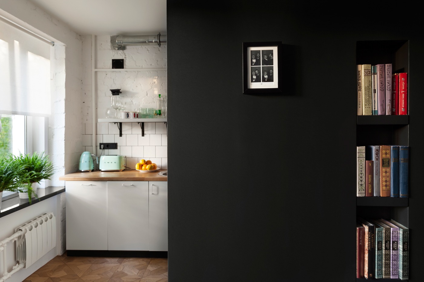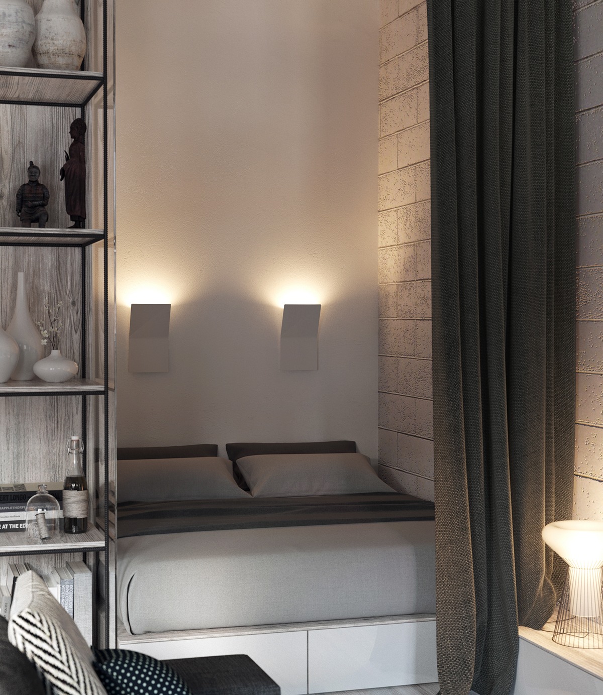 4- طراحي به نام Michael Temnikov در محدوده کوچک 43 متر مربعي، با درک اشکال هندسي ساده، بافت هاي غني و رويکرد مينيماليستي به خلق آثار خود پرداخته است.