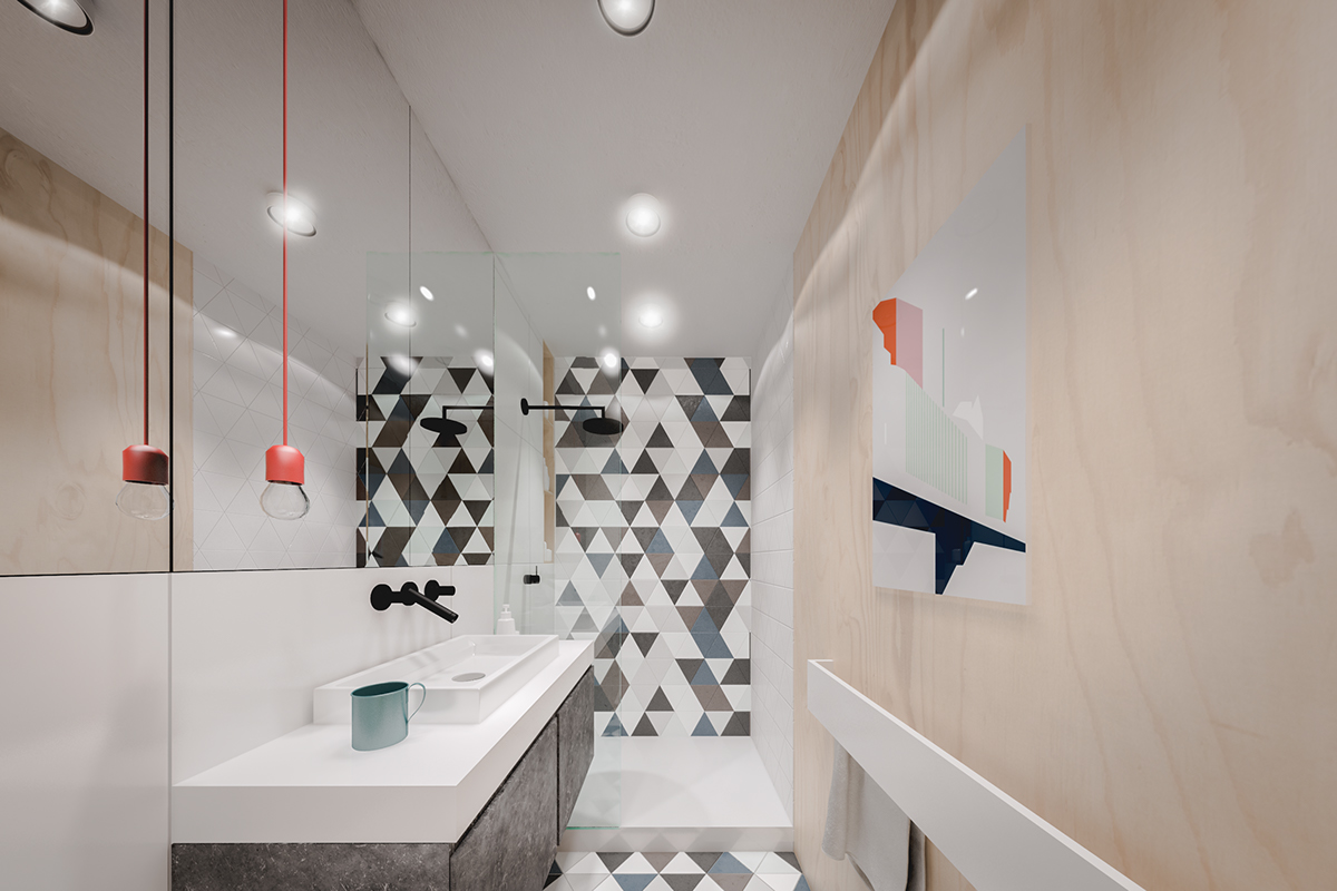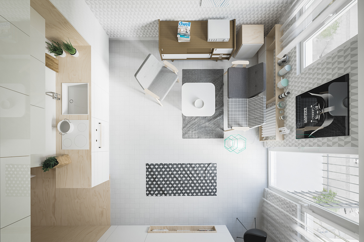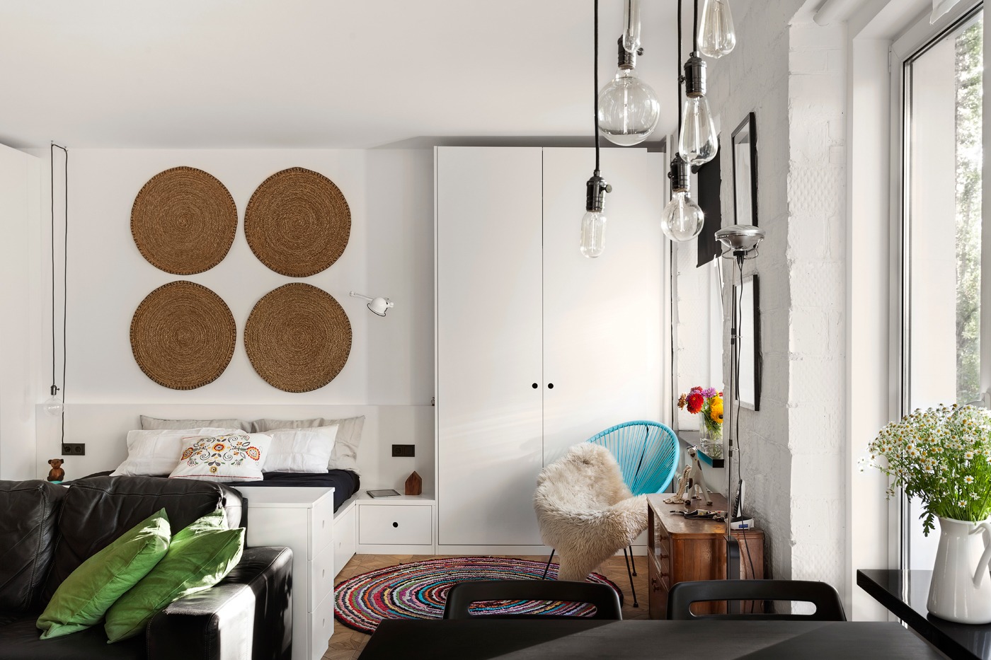 1- طراحان Piotr Matuszek و Gosia Czarny اين آپارتمان کوچک را در 20 متر مربع، طراحي کرده اند. رنگ هاي روشن و خطوط ساده هميشه يک اتاق را کمي بزرگتر از آنچه هست نشان ميدهد. طراحان از موتيف هاي کمرنگ در رنگ هاي تک رنگ استفاده کرده اند. همچنين رنگ هاي منسجم و خطوط واضح به بزرگتر کردن فضاي حمام کمک کرده است.