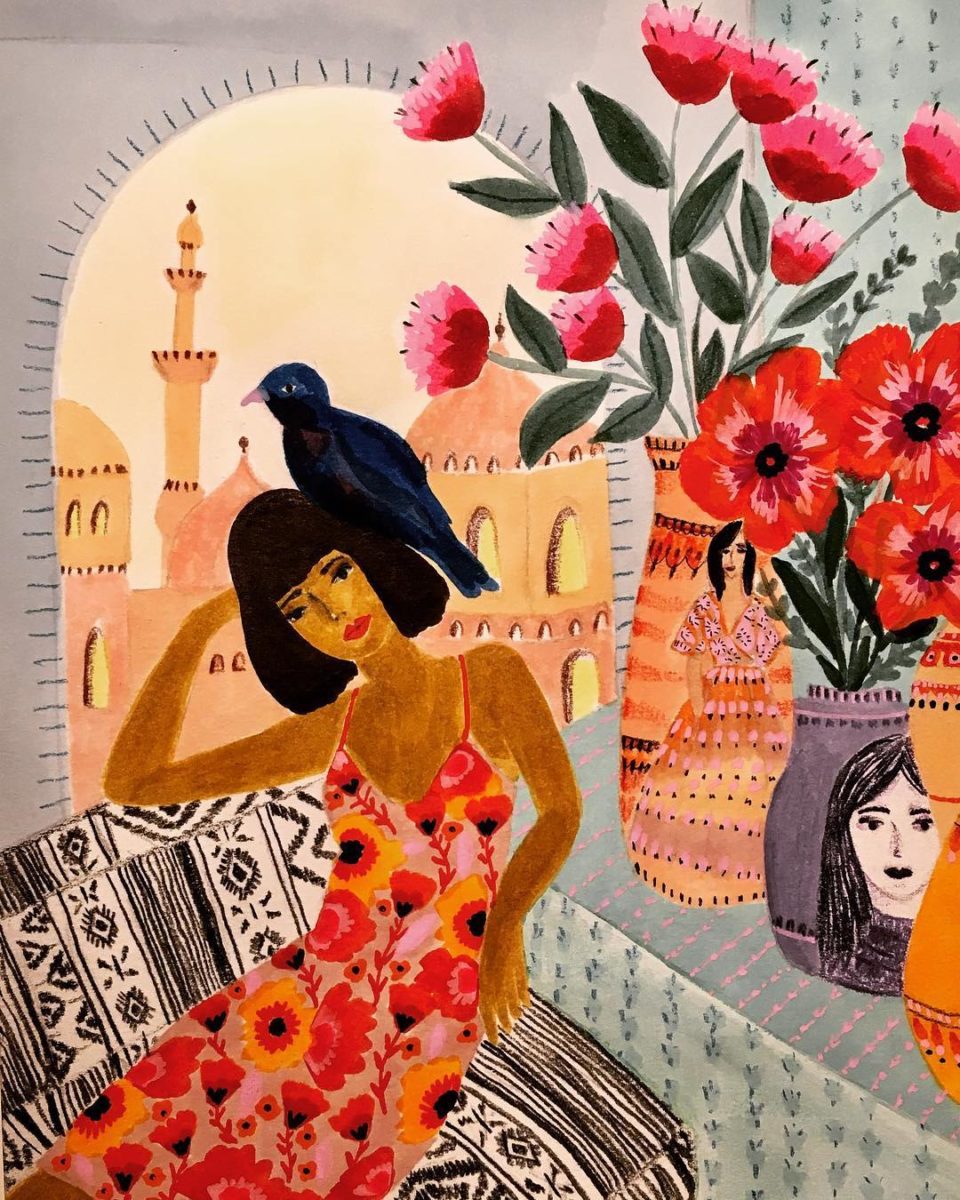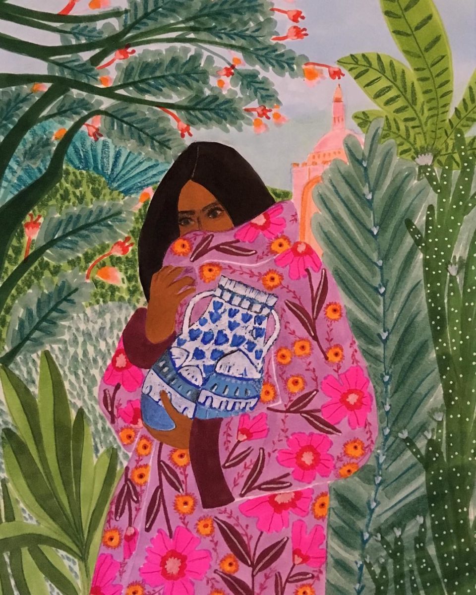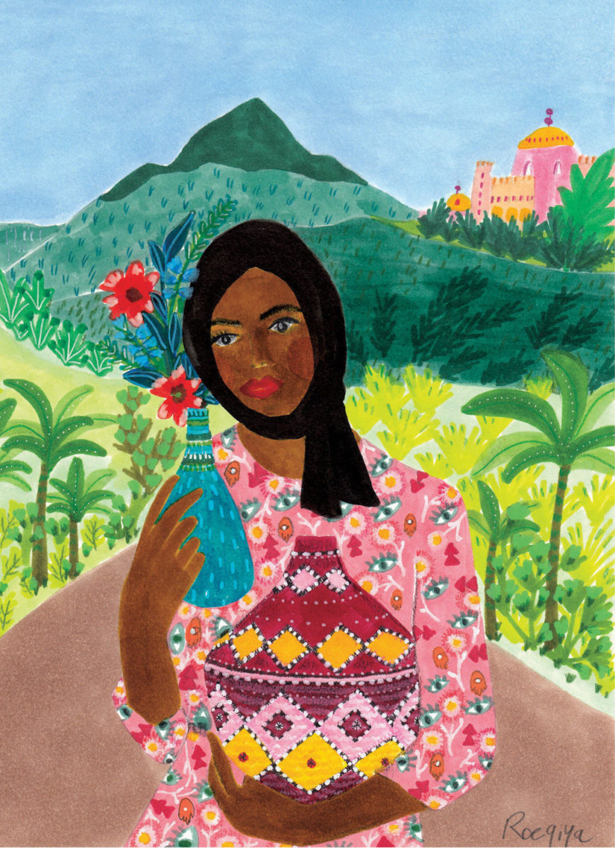 هنرمند مصري_هلندي Roeqiya Fris تصويرسازي هايي با تاکيد ويژه بر ويژگي هاي استفاده از موتيف خلق ميکند.