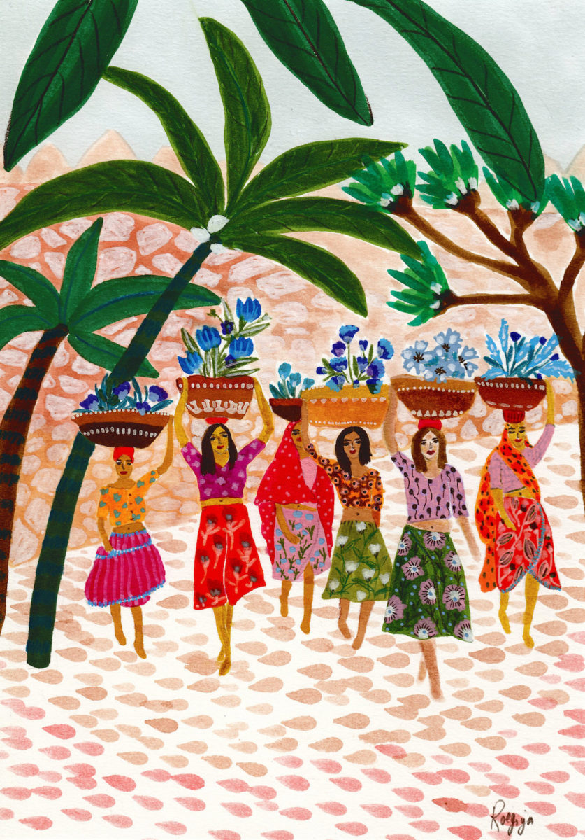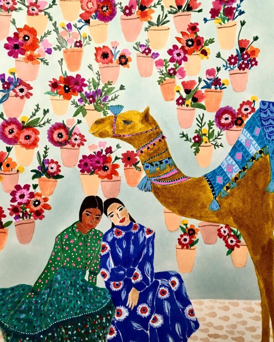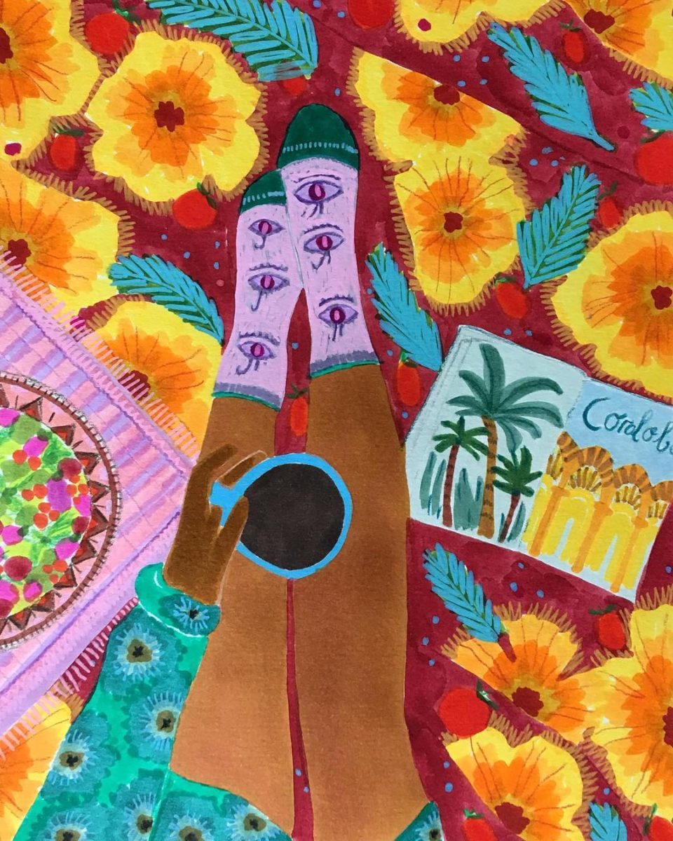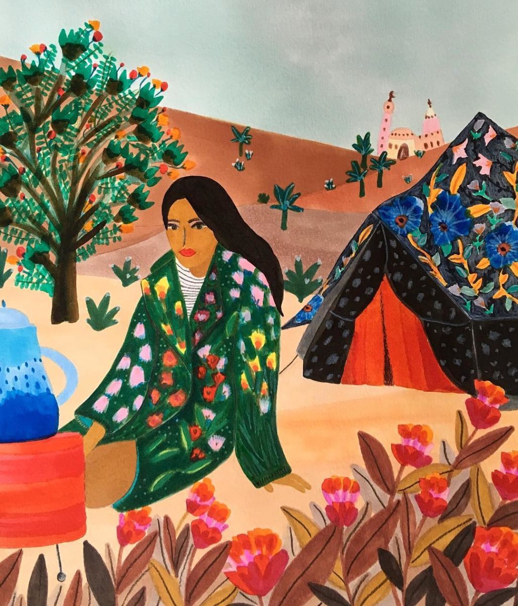 هنرمند مصري_هلندي Roeqiya Fris تصويرسازي هايي با تاکيد ويژه بر ويژگي هاي استفاده از موتيف خلق ميکند.